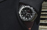 Наручные часы отражают динамичный характер. Необычным элементом стал счётчик у отметки 9 часов, имитирующий турбину. Он помогает контролировать уровень заряда батарейки, чем больше цвета вы видите, тем выше необходимость зарядить модель. Питание осуществляется за счёт солнечной батареи - технология . Также стоит обратить внимание на противоударный корпусУдаропрочный корпусМеханизм заключён в корпус, выполненный из современных материалов, устойчивых к ударам, механическим повреждениям и падению с высоты: инновационный пластик, карбон, нержавеющая сталь, титан. из пластика и стали 316L, такое усиленное сочетание позволяет добиться максимальной прочности. Надёжный стальной браслет. Минеральное стекло. СветодиоднаяСветодиодная подсветкаСветодиодная или LED-подсветка обеспечивает появление яркого холодного свечения за счёт LED-элементов - маленьких лампочек. Они потребляют минимальное количество энергии, чаще всего можно встретить 1 светодиод, в нижней части циферблата. и люминесцентная подсветкаЛюминесцентное покрытиеПозволяет считывать показания времени в темноте. Производители наносят на стрелки, часовые индексы, безель или поверхность циферблата светонакопительный состав, дающий холодное свечение.. Завинчивающаяся заводная головка. Возможности: BluetoothBluetoothСовременная технология, позволяющая синхронизировать часы с телефоном и переносить данные. Часы с Bluetooth расширяют возможности вашего смартфона и делают его использование ещё более удобным., ежедневный будильник, секундомер, хронографХронографФункция позволяет измерять отрезки времени с особой точностью: часы, минуты, секунды. Верным признаком хронографа является наличие на циферблате 3 дополнительных окошек-счётчиков., мировое времяМировое время Полезное часовое усложнение, отображающее время в основных городах и известных областях по всему миру, оно связано с часовыми поясами, удобно для путешественников и бизнесменов. , автоматический календарь, таймер. Габариты: 58,1 x 53,8 x 14,1 мм.