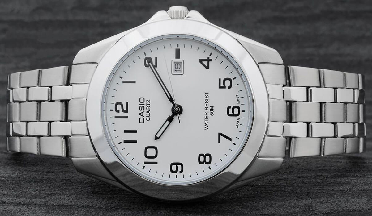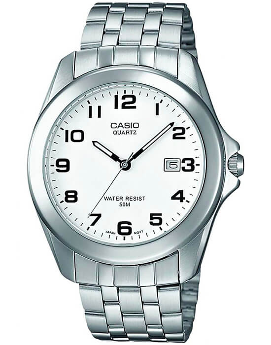Практичные, стильные и универсальные наручные часы грамотно впишутся в любой модный образ. Ударопрочный корпусУдаропрочный корпусМеханизм заключён в корпус, выполненный из современных материалов, устойчивых к ударам, механическим повреждениям и падению с высоты: инновационный пластик, карбон, нержавеющая сталь, титан. выдержит любые негативные воздействия со стороны. На циферблате традиционной формы расположены аккуратные временные отметки в виде арабских цифр. Есть небольшое окошечко с датой. Гармоничный браслет из нержавеющей стали будет прочно сидеть на запястье. Люминесцентная подсветкаЛюминесцентное покрытиеПозволяет считывать показания времени в темноте. Производители наносят на стрелки, часовые индексы, безель или поверхность циферблата светонакопительный состав, дающий холодное свечение. обеспечит полноценную видимость показателей даже в темное время суток. Кварцевый тип механизма. Водонепроницаемость составляет 50 WR.