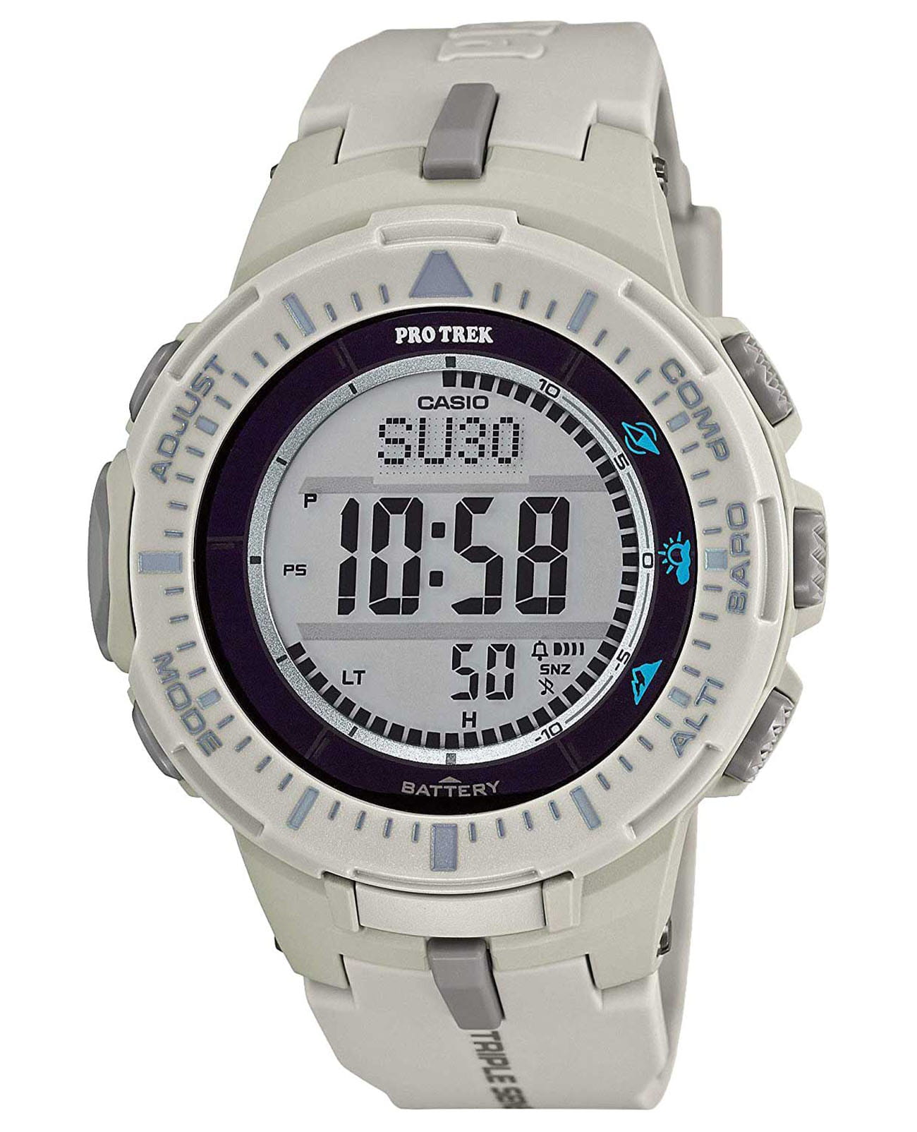 Модуль часов рассчитан на работу при низких температурах до -10°С/14°F. Циферблат подсвечивается ярким светодиодом, при недостаточном освещении во время поворота запястья в сторону лица подсветка включается автоматически. Мировое время включает 48 городов (31 часовой пояс), всемирное координированное время (UTC). Функция включения/отключения летнего времени. 12-ти и 24-х часовой формат времени. Время восхода и захода Солнца. Технология Triple Sensor позволяет точно и легко определять сторону света, температуру и атмосферное давление. Встроенный цифровой компас. Высотомер - встроенный датчик барометрического давления с возможностью вывода результатов в единицах высоты над уровнем моря (от -700 до 10000 метров). График набора высоты. Память данных высотометра - каждая из записей состоит из измеренной абсолютной высоты, даты и времени. SPLIT-хронограф. Секундомер с точностью показаний 1/10с и временем измерения 1000ч. Таймер обратного отсчета от 1 минуты до 24 часов.