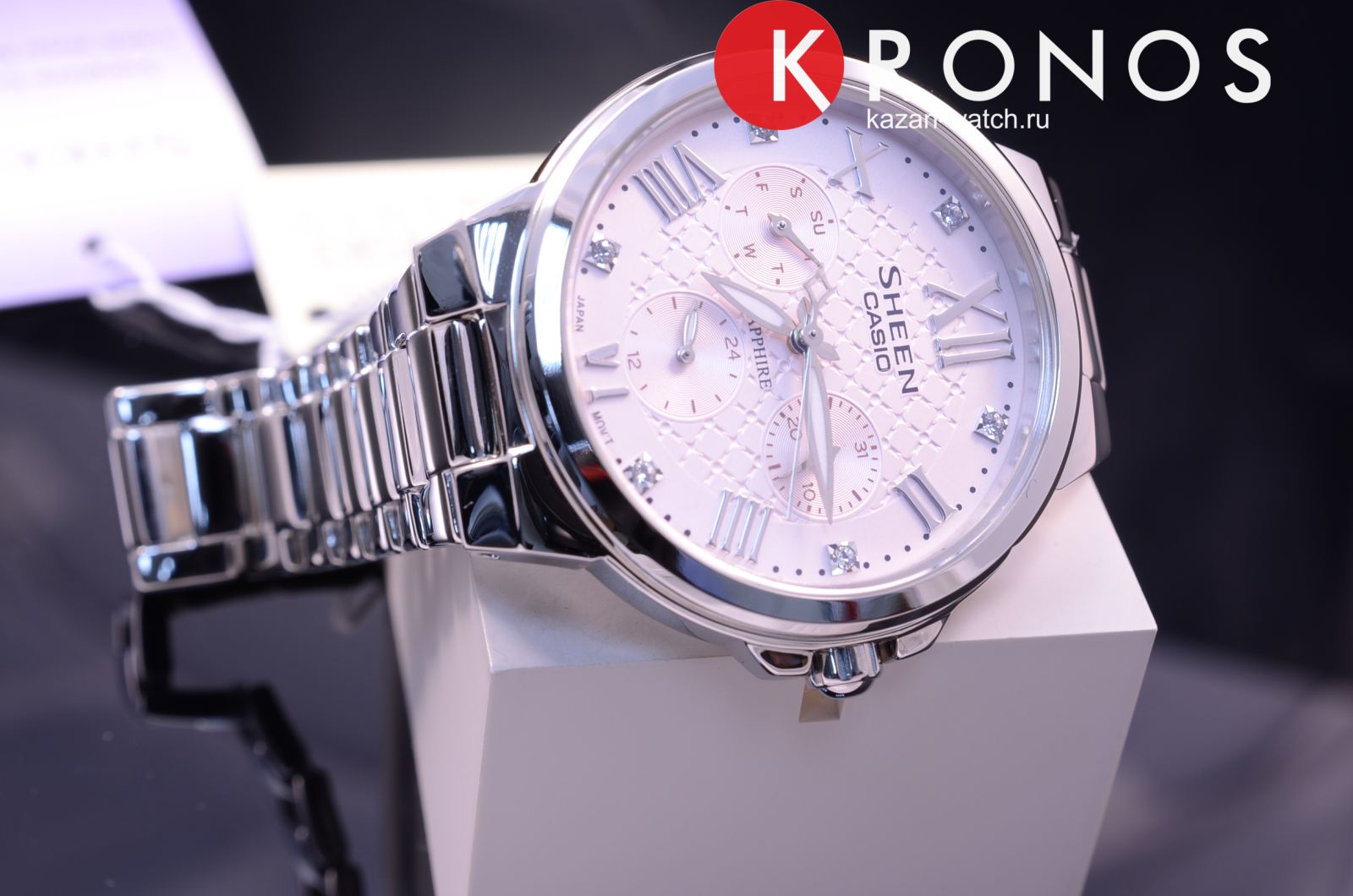 Напоминаем, что коллекция Casio Sheen - это линейка ультра-стильных женских фешн-часов в стальном корпусе, способных украсить собой самое изысканное и утонченное женское запястье. Особенностью коллекции, сделавшей ее популярной во всем мире, является использование знаменитых кристаллов Swarovski® в отделке циферблата каждой модели Sheen.