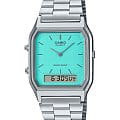 Мужские японские часы Casio Collection AQ-230A-2A2 из коллекции Casio Vintage представляют собой компактный и модный аксессуар. Данная модель сочетает в себе стильный дизайн, симметричность деталей и практичность. Аналоговый способ отображения времени. Кварцевый механизм. Есть функция мирового времениМировое время Полезное часовое усложнение, отображающее время в основных городах и известных областях по всему миру, оно связано с часовыми поясами, удобно для путешественников и бизнесменов. . Многофункциональный календарь, отображающий число, день недели и месяц. Пластиковое стекло. Класс водозащиты: 30 метров, позволит защитить корпус от случайных брызг или капель дождя. СекундомерСекундомерСекундоме́р — прибор, способный измерять интервалы времени с точностью до долей секунды., ежедневный будильникБудильникБуди́льник — часы, в заданный момент времени подающие звуковой, световой и/или в редких случаях другой сигнал.. Стальной браслет на раскладном замкеРаскладной замокДанный вариант застежки используется только на часах с металлическим браслетом. Отличительная особенность такого крепления в том, что длина браслета становится универсальной и вы можете самостоятельно отрегулировать нужный вам размер – застежка просто двигается по браслету часов..