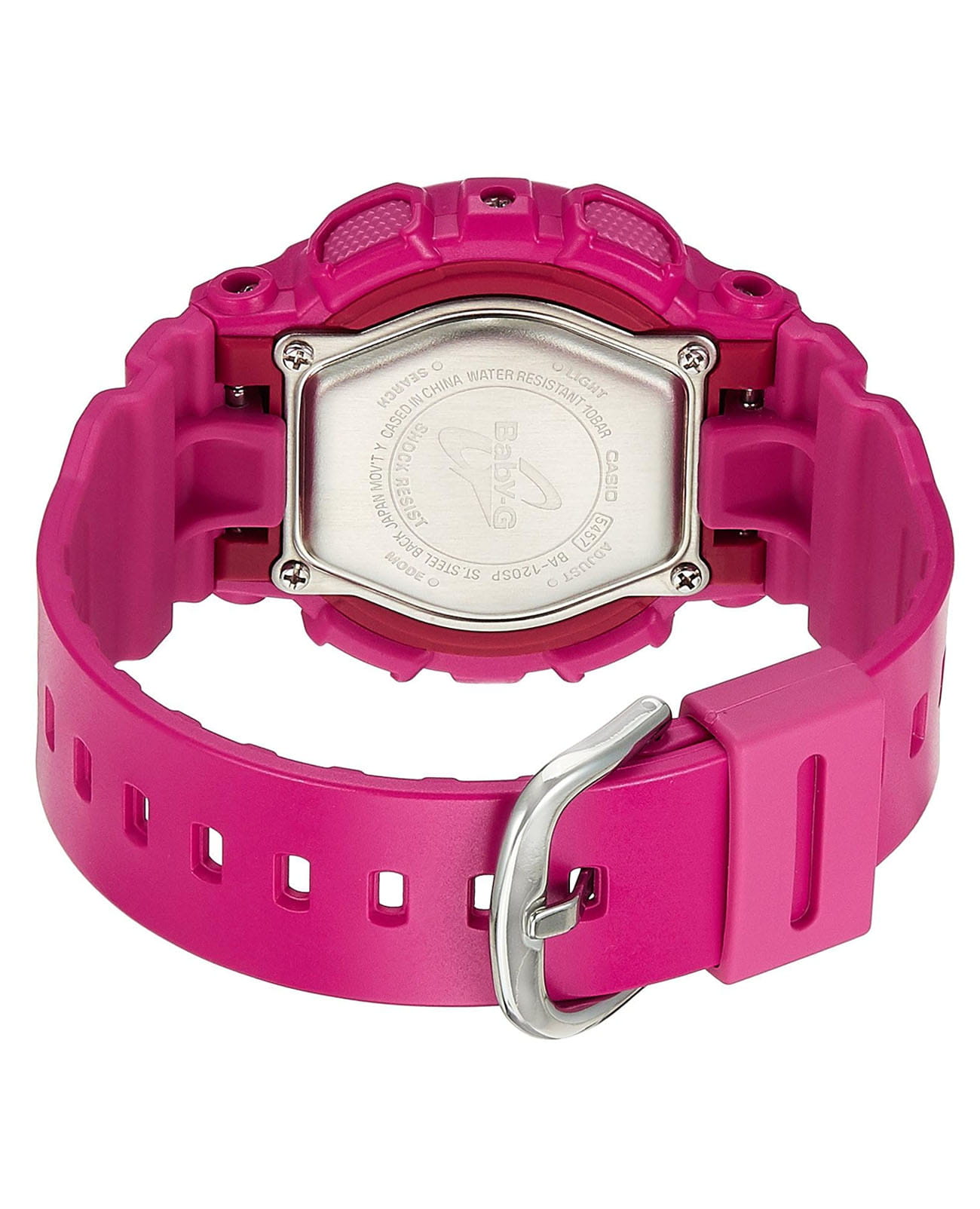 Японские женские часы-хронографХронографФункция позволяет измерять отрезки времени с особой точностью: часы, минуты, секунды. Верным признаком хронографа является наличие на циферблате 3 дополнительных окошек-счётчиков. Casio Baby-G BA-120SP-4ADR из коллекции Baby-G. Серия, которая выражает спортивность и цвет, которые являются основой бренда Baby-G. Минеральное стеклоМинеральное стеклоМинеральное стекло представляет собой искусственно выращенный минерал кварца. Такое стекло отличается особой устойчивостью к повреждениям и царапинам. Уступает по некоторым качествам сапфировому стеклу. устойчивое к появлению царапин, обладающее высокой прозрачностью. Корпус часов изготовлен из полимерного материала. Функции: автоматическая светодиодная подсветка.Необритовое покрытиеПодсветка NeobriteИспользование светонакопительных составов на основе сульфида цинка или алюмината стронция, яркий свет можно наблюдать на протяжении 6-10 часов после «зарядки» часов около источника света. продолжает светиться в темноте даже после непродолжительного пребывания на свету.Ударопрочный корпусУдаропрочный корпусМеханизм заключён в корпус, выполненный из современных материалов, устойчивых к ударам, механическим повреждениям и падению с высоты: инновационный пластик, карбон, нержавеющая сталь, титан. защищает механизм от ударов и вибрации. Функция Мирового времениМировое время Полезное часовое усложнение, отображающее время в основных городах и известных областях по всему миру, оно связано с часовыми поясами, удобно для путешественников и бизнесменов. . СекундомерСекундомерСекундоме́р — прибор, способный измерять интервалы времени с точностью до долей секунды. с точностью измерения 1/100 секунды и измерением до 23 часов 59 минут 59,99 cек. ТаймерТаймерОтсчитывает секунды в обратном направлении в заданном интервале времени. обратного отсчета (диапазон времени 24 часа), автоматический календарь, 12/24 отображение времени. 5 ежедневных будильниковБудильникБуди́льник — часы, в заданный момент времени подающие звуковой, световой и/или в редких случаях другой сигнал.. Класс водозащиты: 100 метров, позволит плавать без погружения. Ремешок из полимерного материала на стандартной застежке.