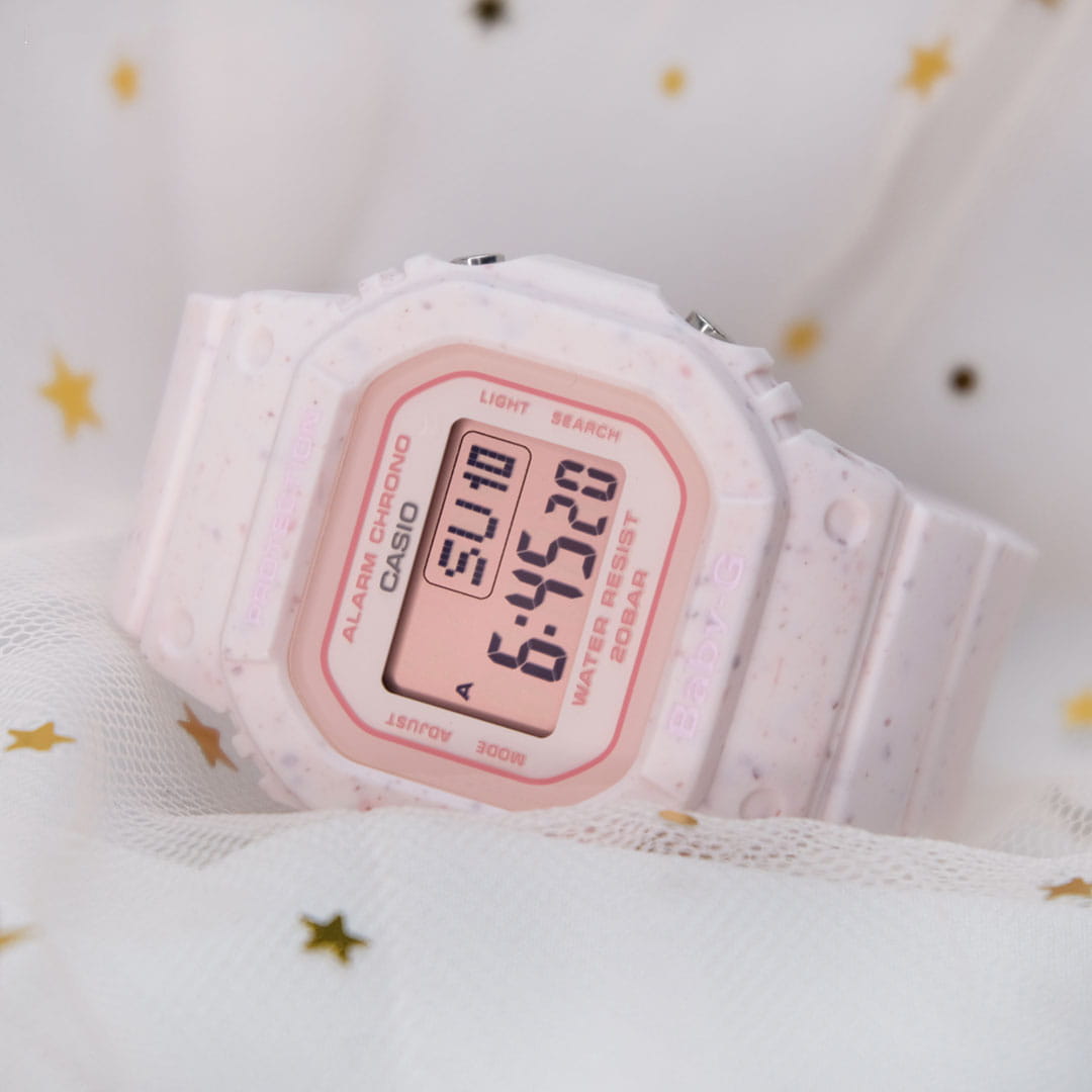 Японские женские многофункциональные часы BGD-560CR-4 из коллекции Baby-G. Серия, которая выражает спортивность и цвет, которые являются основой бренда Baby-G. Противоударный корпусУдаропрочный корпусМеханизм заключён в корпус, выполненный из современных материалов, устойчивых к ударам, механическим повреждениям и падению с высоты: инновационный пластик, карбон, нержавеющая сталь, титан. защищает механизм от ударов и вибрации. Электролюминесцентная подсветкаЭлектролюминесцентная подсветкаЭлектролюминесцентная панель устанавливается под ЖК-экраном часов, при нажатии кнопки электричество преобразуется в свет за счёт подачи напряжения на атомы фосфора, такой тип подсветки позволяет освещать весь циферблат. освещает весь циферблат, после отпускания кнопки свечение продолжается еще некоторое время. Настраиваемое послесвечение 1,5 или 3сек. Цвет подсветки: сине-зеленый. 12-ти и 24-х часовой формат времени. СекундомерСекундомерСекундоме́р — прибор, способный измерять интервалы времени с точностью до долей секунды. с точностью показаний 1/100с и временем измерения 1ч. Сплит-хронографСплит-хронографИспользуется для измерения продолжительности нескольких временных отрезков, начинающихся одновременно, а заканчивающихся в разное время.. Таймер обратного отсчета от 1сек до 24ч. Мировое время Мировое время Полезное часовое усложнение, отображающее время в основных городах и известных областях по всему миру, оно связано с часовыми поясами, удобно для путешественников и бизнесменов. – 48 городов (29 часовых поясов). Функции включения/отключения летнего времени и включения/отключения звука. Батарея рассчитана на 3 года. Стальная задняя крышка крепится на 4-х винтах. Ремешок с классической застежкой.