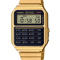 Японские унисекс часы с хронографом Casio Vintage CA-500WEG-1A, кварцевый механизм с высокой точностью. Корпус часов изготовлен из пластика, серебристого цвета. Светодиодная подсветкаСветодиодная подсветкаСветодиодная или LED-подсветка обеспечивает появление яркого холодного свечения за счёт LED-элементов - маленьких лампочек. Они потребляют минимальное количество энергии, чаще всего можно встретить 1 светодиод, в нижней части циферблата., секундомерСекундомерСекундоме́р — прибор, способный измерять интервалы времени с точностью до долей секунды. с точностью измерений 1/100 сек., общее время измерений 24 часа. Будильник с функцией Snooze. Автоматический календарь. 8-ми разрядный калькулятор. Класс водозащиты: 30 метров, позволит защитить корпус от случайных брызг или капель дождя. Браслет из стали с IP-покрытиемIP-покрытиеМетод ионного напыления. Демонстрирует повышенную устойчивость к истиранию, окислению и химическим веществам. Под воздействием высокого давления и температуры около 1500°C молекулы металла надёжно соединяются с частицами корпуса часов. на раскладной застёжкеРаскладная застёжкаТакой тип застёжки используется только на браслетах из металла. Она никогда не раскрывается полностью, происходит разделение на 2 и более частей. Раскладывающая застёжка снизит вероятность потери часов к минимуму.. Калькулятор позволяет производить различные математические вычисления, используя числа, содержащие до 8 знаков.