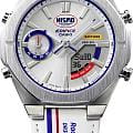 Японские мужские наручные часы Casio Edifice ECB-S10NIS-7A — это высокотехнологичный аксессуар для тех, кто ценит точность, стиль и современные инновации. Модель создана совместно с компанией Nismo, которая занимается автотюнингом и представляет интересы компании Nissan в автоспорте. Модель из коллекции Edifice, оснащённая технологией Bluetooth®, объединяет в себе классический дизайн и цифровые функции, делая каждое использование по-настоящему удобным. Корпус диаметром 43 мм выполнен из прочной нержавеющей стали , что придаёт модели благородства и долговечности. Циферблат серебристого цвета изготовлен по технологии Sunray (солнечные лучи), обеспечивая глубину и игру света. Защиту механизму обеспечивает сапфировое стеклоСапфировое стеклоПрочный и надёжный материал из кристалла сапфира синтетического происхождения, характеризующийся особой твёрдостью и устойчивостью к царапинам и повреждениям., устойчивое к царапинам и с антибликовым покрытием для лучшей читаемости. Часы работают на кварцевом механизме с поддержкой BluetoothBluetoothСовременная технология, позволяющая синхронизировать часы с телефоном и переносить данные. Часы с Bluetooth расширяют возможности вашего смартфона и делают его использование ещё более удобным.. Это даёт возможность автоматически корректировать время, устанавливать будильники, отслеживать дни недели на 6 языках , включая русский. Модель предлагает широкий набор функций: — Секундомер с точностью 1/100 секунды и временем измерения до 24 часов ; — SPLIT-хронографСплит-хронографИспользуется для измерения продолжительности нескольких временных отрезков, начинающихся одновременно, а заканчивающихся в разное время.; — ТаймерТаймерОтсчитывает секунды в обратном направлении в заданном интервале времени. обратного отсчёта от 1 секунды до 24 часов ; — 5 независимых будильников и ежечасный сигнал ; — отображение времени в формате 12/24 часа ; — автоматический календарь с возможностью отображения дня недели до 2099 года. Для комфортного использования в темное время стрелки покрыты люминесцентным составом. Часы также имеют светодиодную подсветкуСветодиодная подсветкаСветодиодная или LED-подсветка обеспечивает появление яркого холодного свечения за счёт LED-элементов - маленьких лампочек. Они потребляют минимальное количество энергии, чаще всего можно встретить 1 светодиод, в нижней части циферблата. циферблата, что делает их особенно удобными в условиях слабого освещения. Часы обладают водозащитой WR100 , подходят для повседневного ношения и плавания без акваланга. Толщина корпуса составляет всего 9.6 мм, благодаря чему часы легко помещаются под манжетом рубашки и не вызывают дискомфорта при носке. Завершает образ кожаный ремень со стандартной застежкой, обеспечивающий надежную фиксацию и комфортную посадку на запястье. Батарейка рассчитана на 2 года автономной работы , а вес модели составляет 69 грамм . Эта модель — идеальный выбор для тех, кто ценит современные технологии , классический стиль и точность японского качества . Casio Edifice — не просто хронограф, а полноценный спутник в деловой и повседневной жизни.
