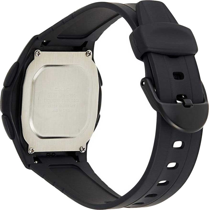 Спортивные японские мужские наручные часы Casio Collection F-200W-9A с будильникомБудильникБуди́льник — часы, в заданный момент времени подающие звуковой, световой и/или в редких случаях другой сигнал.. Корпус - Пластиковый; Стекло - Пластик; Водозащита - 50 метров, позволит защитить корпус от случайных брызг или капель дождя; Материал ремешка - Пластиковый; Цвет ремешка - Черный; Цвет циферблата - Lcd. Светодиодная подсветкаСветодиодная подсветкаСветодиодная или LED-подсветка обеспечивает появление яркого холодного свечения за счёт LED-элементов - маленьких лампочек. Они потребляют минимальное количество энергии, чаще всего можно встретить 1 светодиод, в нижней части циферблата..