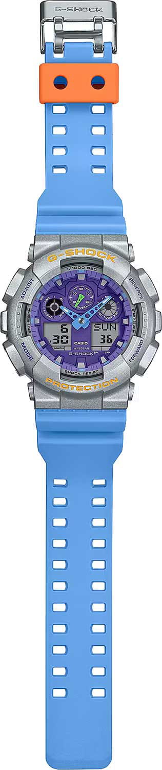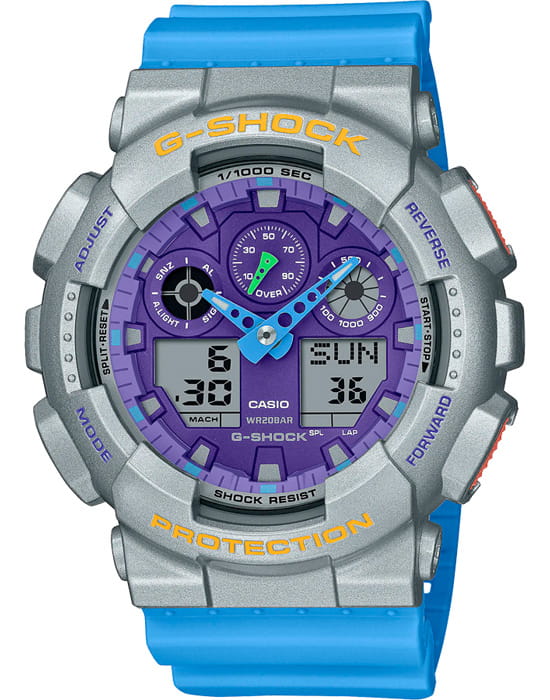 Японские мужские часы-хронографХронографФункция позволяет измерять отрезки времени с особой точностью: часы, минуты, секунды. Верным признаком хронографа является наличие на циферблате 3 дополнительных окошек-счётчиков. Casio G-Shock GA-100EU-8A2 (GA-100EU-8A2). Эти прочные часы, выполненные в яркой черно-желтой цветовой гамме, завораживают глаз и привлекают к себе внимание. Строгий, но стильный дизайн выполнен в базовом черном цвете с акцентом на оттенках ярко-желтого, который используется для аварийно-спасательных работ и знаков безопасности. Стильный универсальный образ, который дополняет как повседневный, так и рабочий стили. Минеральное стеклоМинеральное стеклоМинеральное стекло представляет собой искусственно выращенный минерал кварца. Такое стекло отличается особой устойчивостью к повреждениям и царапинам. Уступает по некоторым качествам сапфировому стеклу. устойчивое к появлению царапин, обладающее высокой прозрачностью. Tough SolarTough SolarТехнология основана на подзарядке аккумулятора от источника солнечного света, специальная панель улавливает солнечные лучи и преобразует их в энергию для работы часов. Достаточно пары минут нахождения на солнце для функционирования часов в течении суток.. Ударопрочный корпусУдаропрочный корпусМеханизм заключён в корпус, выполненный из современных материалов, устойчивых к ударам, механическим повреждениям и падению с высоты: инновационный пластик, карбон, нержавеющая сталь, титан. защищает механизм от ударов и вибрации. Светодиодная подсветкаСветодиодная подсветкаСветодиодная или LED-подсветка обеспечивает появление яркого холодного свечения за счёт LED-элементов - маленьких лампочек. Они потребляют минимальное количество энергии, чаще всего можно встретить 1 светодиод, в нижней части циферблата. освещает весь циферблат, после отпускания кнопки свечение продолжается еще некоторое время. Настраиваемое послесвечение 1,5 или 3сек. Мировое время Мировое время Полезное часовое усложнение, отображающее время в основных городах и известных областях по всему миру, оно связано с часовыми поясами, удобно для путешественников и бизнесменов. 48 городов (29 часовых поясов), всемирное координированное время UTCUTCВсемирное кординационное время, не имеющее привязки к географическому положению Гринвича, основывается на атомном отсчёте времени. Регулировка времени осуществляется более точно, чем устаревшее GMT.