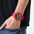 Японские мужские наручные часы Casio GA-110FC-1A c кварцевым механизмом высокой точности. Корпус часов изготовлен из полимерного пластика красного цвета. Функции: Сплит-хронографСплит-хронографИспользуется для измерения продолжительности нескольких временных отрезков, начинающихся одновременно, а заканчивающихся в разное время., Мировое времяМировое время Полезное часовое усложнение, отображающее время в основных городах и известных областях по всему миру, оно связано с часовыми поясами, удобно для путешественников и бизнесменов. , светодиодная подсветкаСветодиодная подсветкаСветодиодная или LED-подсветка обеспечивает появление яркого холодного свечения за счёт LED-элементов - маленьких лампочек. Они потребляют минимальное количество энергии, чаще всего можно встретить 1 светодиод, в нижней части циферблата., секундомерСекундомерСекундоме́р — прибор, способный измерять интервалы времени с точностью до долей секунды., таймерТаймерОтсчитывает секунды в обратном направлении в заданном интервале времени., будильникБудильникБуди́льник — часы, в заданный момент времени подающие звуковой, световой и/или в редких случаях другой сигнал., автоматический календарь, 12/24 отображение времени. Минеральное стекло, корпус и ремешок из полимерного пластика, водонепроницаемость (20 бар). Габариты (Ш x В x Г) 51,2 х 55 х 16,9. Вес 72 г.