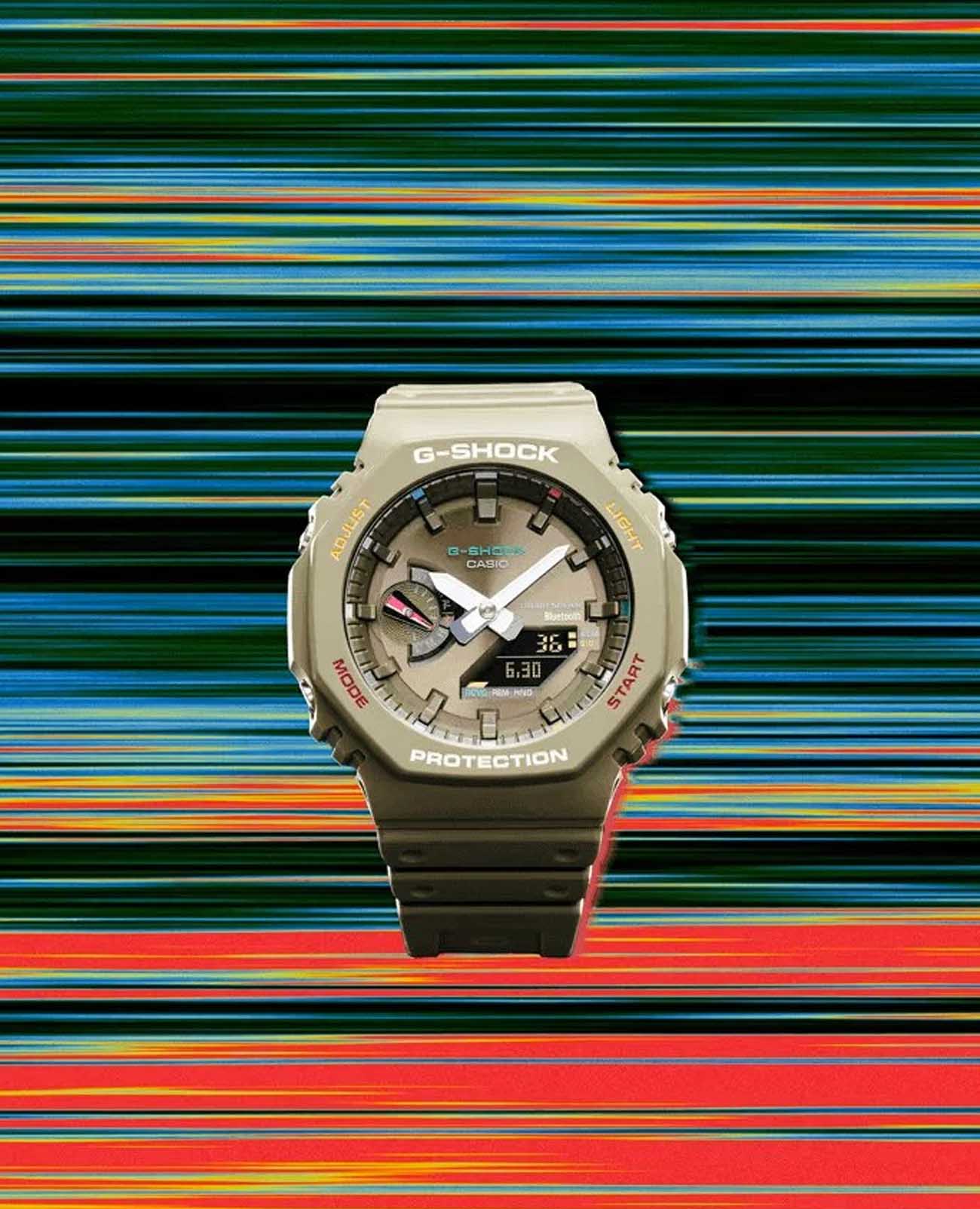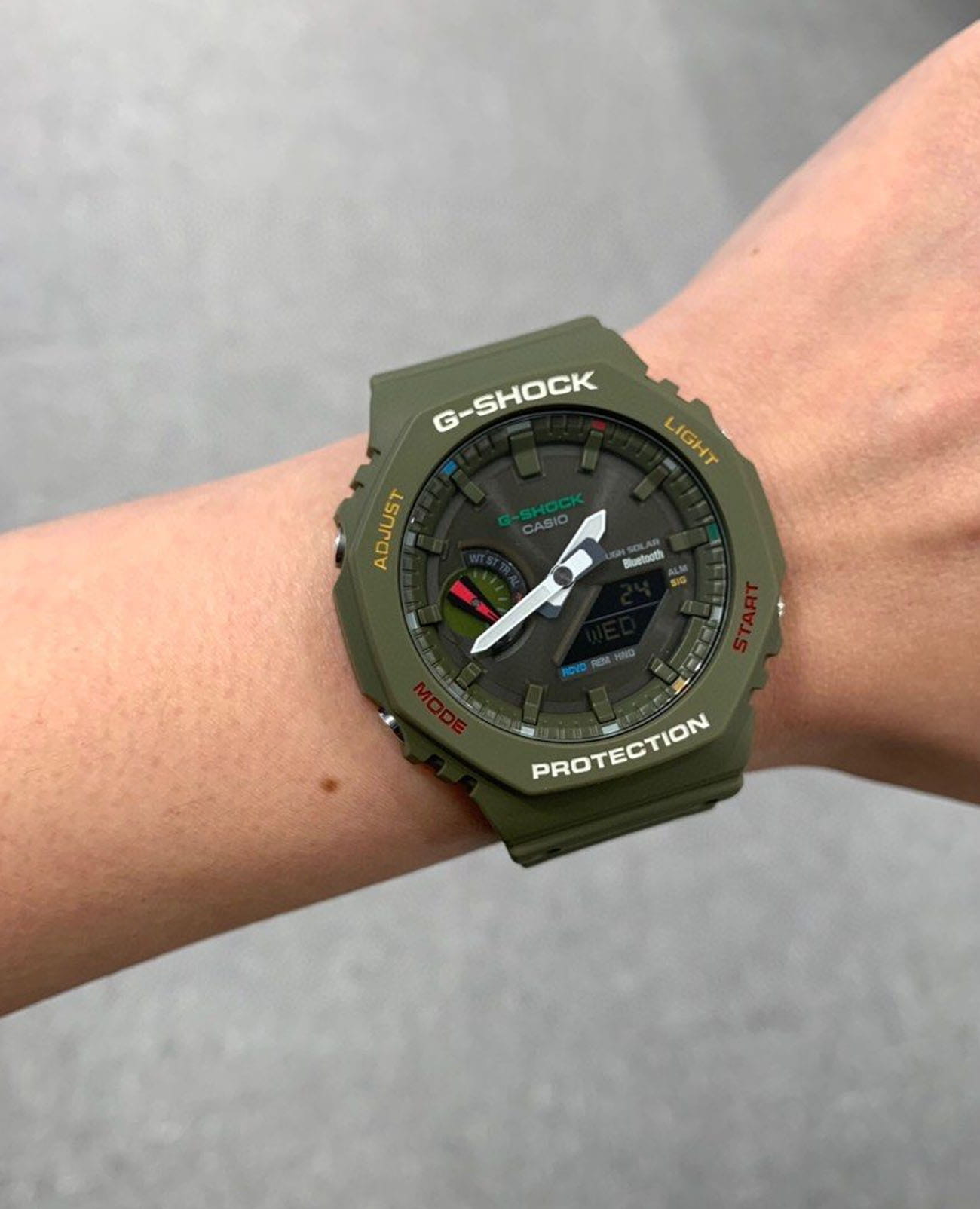 Японские мужские часы-хронографХронографФункция позволяет измерять отрезки времени с особой точностью: часы, минуты, секунды. Верным признаком хронографа является наличие на циферблате 3 дополнительных окошек-счётчиков. Casio G-Shock GA-B2100FC-3A. Супер стильная обновленная расцветка в одном из самых популярных корпусов G-Shock последних лет. Харизматичная модель в матовом оливковом корпусе с контрастными стрелками и яркими деталями циферблата из серии GA-B2100 сохранила внешний облик своих предшественников по серии GA-2100, но получила более технологичный модуль с блютус синхронизацией со смартфоном и Tough SolarTough SolarТехнология основана на подзарядке аккумулятора от источника солнечного света, специальная панель улавливает солнечные лучи и преобразует их в энергию для работы часов. Достаточно пары минут нахождения на солнце для функционирования часов в течении суток.. Минеральное стеклоМинеральное стеклоМинеральное стекло представляет собой искусственно выращенный минерал кварца. Такое стекло отличается особой устойчивостью к повреждениям и царапинам. Уступает по некоторым качествам сапфировому стеклу. устойчивое к появлению царапин, обладающее высокой прозрачностью. Ударопрочный корпусУдаропрочный корпусМеханизм заключён в корпус, выполненный из современных материалов, устойчивых к ударам, механическим повреждениям и падению с высоты: инновационный пластик, карбон, нержавеющая сталь, титан. Carbon Core GuardCarbon Core Guard Новейшая структура корпуса, разработанная Casio. Полиуретановая пластина дополнительно усилена карбоновыми вставками, что придаёт специальную защиту от механических повреждений. Карбон отличается лёгкостью и прочностью.. Светодиодная подсветкаСветодиодная подсветкаСветодиодная или LED-подсветка обеспечивает появление яркого холодного свечения за счёт LED-элементов - маленьких лампочек. Они потребляют минимальное количество энергии, чаще всего можно встретить 1 светодиод, в нижней части циферблата. освещает весь циферблат, после отпускания кнопки свечение продолжается еще некоторое время. Настраиваемое послесвечение 1,5 или 3сек. Мировое время Мировое время Полезное часовое усложнение, отображающее время в основных городах и известных областях по всему миру, оно связано с часовыми поясами, удобно для путешественников и бизнесменов. 38 городов (38 часовых поясов), всемирное координированное время UTCUTCВсемирное кординационное время, не имеющее привязки к географическому положению Гринвича, основывается на атомном отсчёте времени. Регулировка времени осуществляется более точно, чем устаревшее GMT.