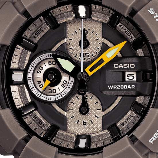 Мужские японские противоударные часы с хронографом Casio G-Shock GAC-100-8A, электронный механизм с высокой точностью. Класс водозащиты: 200 метров, позволит плавать, нырять и заниматься другими водными видами спорта. Корпус часов изготовлен из пластика, серого цвета.