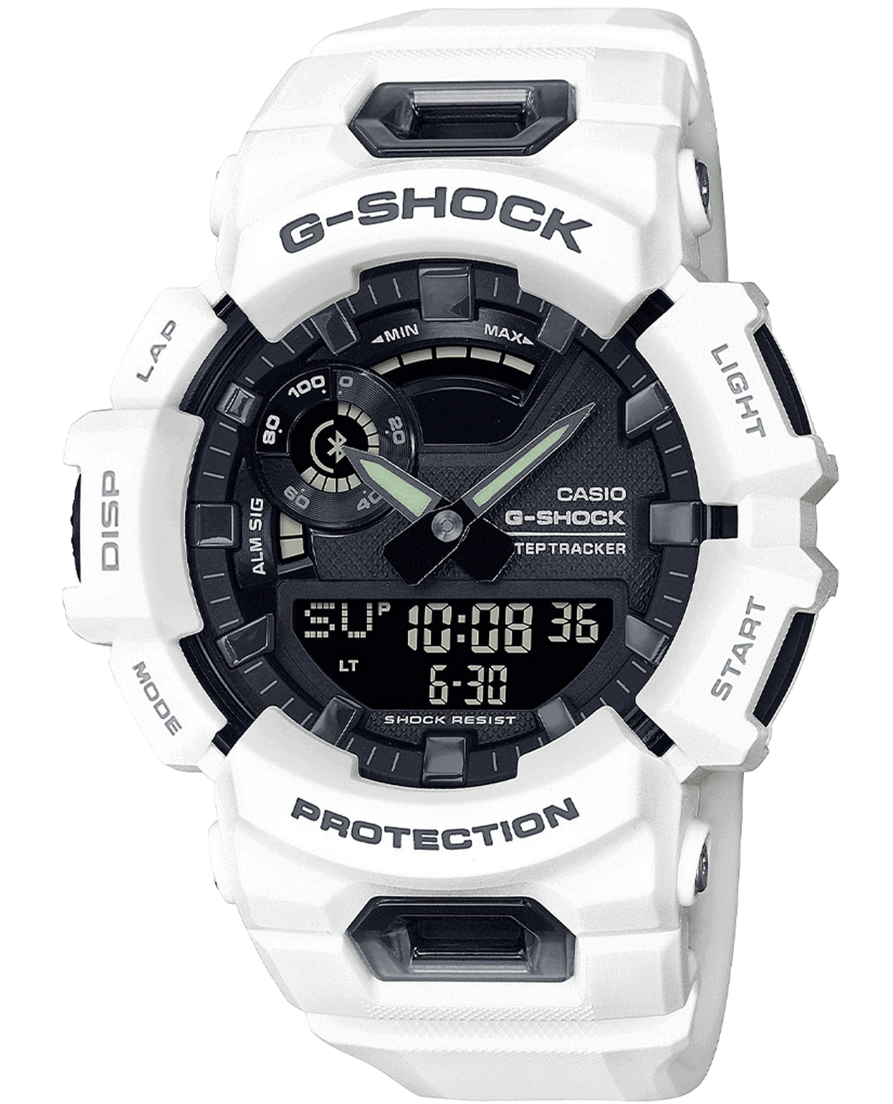 Японские мужские противоударные часы с шагомером Casio G-Shock GBA-900-7A, электронный механизм с высокой точностью. Класс водозащиты: 200 метров, позволит плавать, нырять и заниматься другими водными видами спорта. Корпус часов изготовлен из пластика, цвета.