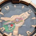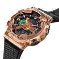 Корпус часов бронзового цвета изготовлен из нержавеющей стали с внутренним корпусом из полимерного пластика. Часы ударопрочные с водозащитой до 200 метров. Светодиодная подсветка Super Illuminator с автоматическим переключением света, возможностью выбрать продолжительность освещения (1,5 секунды или 3 секунды), послесвечение. Ремешок из полимерного материала с классической застежкой.