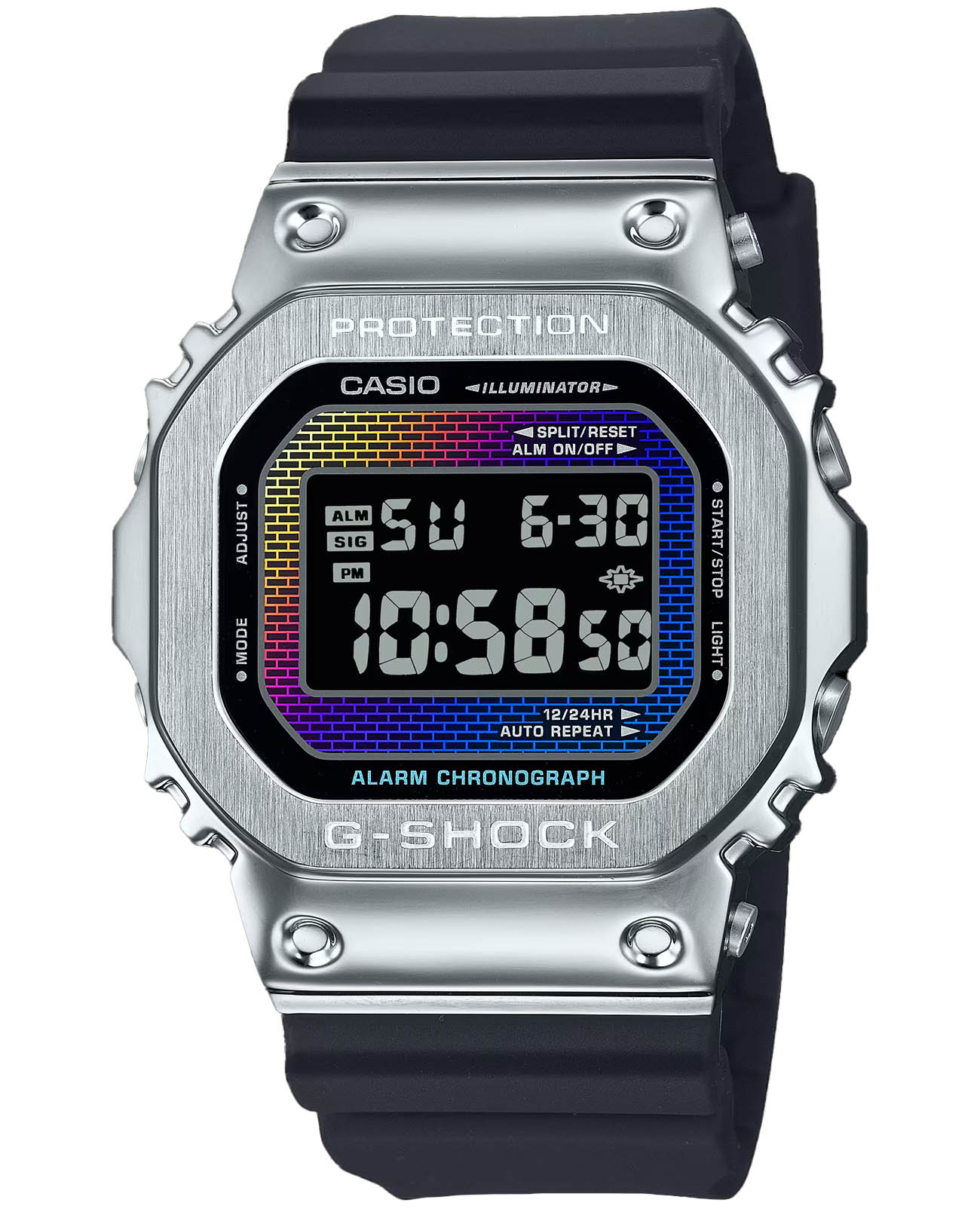 Японские ударопрочныеУдаропрочный корпусМеханизм заключён в корпус, выполненный из современных материалов, устойчивых к ударам, механическим повреждениям и падению с высоты: инновационный пластик, карбон, нержавеющая сталь, титан. мужские часы-хронографХронографФункция позволяет измерять отрезки времени с особой точностью: часы, минуты, секунды. Верным признаком хронографа является наличие на циферблате 3 дополнительных окошек-счётчиков. GM-5600RW-1 в стальном корпусе. Минеральное стеклоМинеральное стеклоМинеральное стекло представляет собой искусственно выращенный минерал кварца. Такое стекло отличается особой устойчивостью к повреждениям и царапинам. Уступает по некоторым качествам сапфировому стеклу. устойчивое к появлению царапин, обладающее высокой прозрачностью. Ударопрочный корпусУдаропрочный корпусМеханизм заключён в корпус, выполненный из современных материалов, устойчивых к ударам, механическим повреждениям и падению с высоты: инновационный пластик, карбон, нержавеющая сталь, титан. защищает механизм от ударов и вибрации. Электролюминесцентная подсветкаЭлектролюминесцентная подсветкаЭлектролюминесцентная панель устанавливается под ЖК-экраном часов, при нажатии кнопки электричество преобразуется в свет за счёт подачи напряжения на атомы фосфора, такой тип подсветки позволяет освещать весь циферблат. освещает весь циферблат. Включение/выключение звукового сигнала нажатия кнопки. 12/24-часовой формат времени. Tough SolarTough SolarТехнология основана на подзарядке аккумулятора от источника солнечного света, специальная панель улавливает солнечные лучи и преобразует их в энергию для работы часов. Достаточно пары минут нахождения на солнце для функционирования часов в течении суток.. Мировое время Мировое время Полезное часовое усложнение, отображающее время в основных городах и известных областях по всему миру, оно связано с часовыми поясами, удобно для путешественников и бизнесменов. 31 часовой пояс (48 городов + всемирное координированное время), переход на летнее время вкл./выкл. СекундомерСекундомерСекундоме́р — прибор, способный измерять интервалы времени с точностью до долей секунды.. ТаймерТаймерОтсчитывает секунды в обратном направлении в заданном интервале времени.. 5 ежедневных будильниковБудильникБуди́льник — часы, в заданный момент времени подающие звуковой, световой и/или в редких случаях другой сигнал.. Почасовой сигнал времени. Класс водозащиты: 200 метров, позволит плавать, нырять и заниматься другими водными видами спорта. Ремешок из полимерного материала на стандартной застежке.