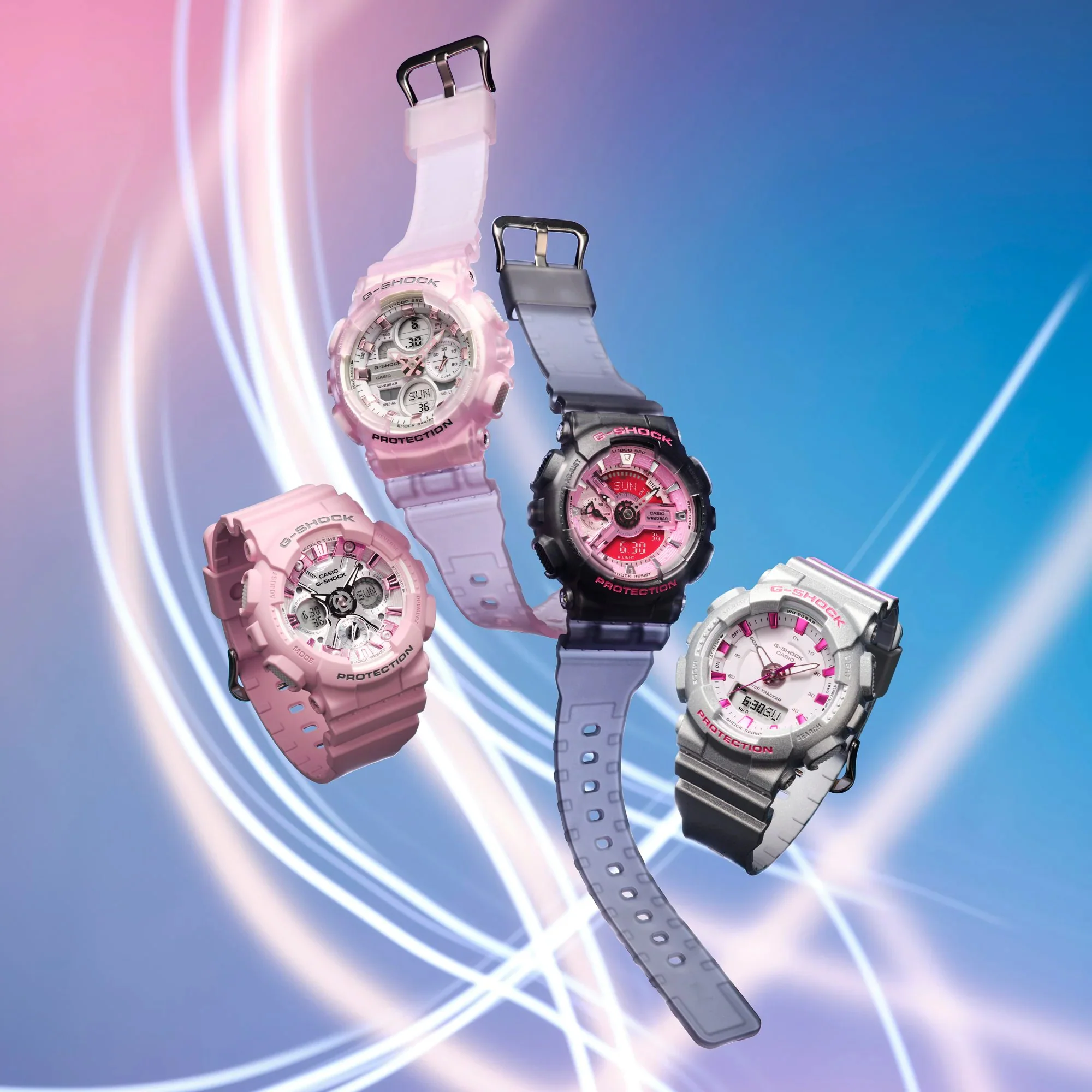 Японские женские часы GMA-S120NP-4A из коллекции G-Shock представлены в спортивном облачении. Кварцевые часы. Аналогово-цифровой циферблат. Наручные часы с противоударным корпусомУдаропрочный корпусМеханизм заключён в корпус, выполненный из современных материалов, устойчивых к ударам, механическим повреждениям и падению с высоты: инновационный пластик, карбон, нержавеющая сталь, титан. выполнены из полимерного материала, легко поглощающего силу удара и вибрации, что делает их надёжным и долговечным аксессуаром. Кварцевый механизм японского производства. Батарейка рассчитана на 3 года службы. Стрелки со светодиодной подсветкойСветодиодная подсветкаСветодиодная или LED-подсветка обеспечивает появление яркого холодного свечения за счёт LED-элементов - маленьких лампочек. Они потребляют минимальное количество энергии, чаще всего можно встретить 1 светодиод, в нижней части циферблата.. Минеральное стеклоМинеральное стеклоМинеральное стекло представляет собой искусственно выращенный минерал кварца. Такое стекло отличается особой устойчивостью к повреждениям и царапинам. Уступает по некоторым качествам сапфировому стеклу.. Защита от магнитных полей. Водонепроницаемость 200 метров, позволит плавать, нырять и заниматься другими водными видами спорта. Функциональные возможности: мировое времяМировое время Полезное часовое усложнение, отображающее время в основных городах и известных областях по всему миру, оно связано с часовыми поясами, удобно для путешественников и бизнесменов. , таймерТаймерОтсчитывает секунды в обратном направлении в заданном интервале времени. обратного отсчёта, будильникБудильникБуди́льник — часы, в заданный момент времени подающие звуковой, световой и/или в редких случаях другой сигнал., хронографХронографФункция позволяет измерять отрезки времени с особой точностью: часы, минуты, секунды. Верным признаком хронографа является наличие на циферблате 3 дополнительных окошек-счётчиков., автоматический календарь до 2099 года, UTCUTCВсемирное кординационное время, не имеющее привязки к географическому положению Гринвича, основывается на атомном отсчёте времени. Регулировка времени осуществляется более точно, чем устаревшее GMT.
