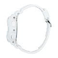 Компактный аксессуар имеет дизайн в скелетонизорованном формате. Полимерный корпус и ремешок белого цвета. Циферблат с минеральным стеклом наделён винтажными элементами: окошки и стрелки оформлены в духе музыкальных проигрывателей эпохи 90-х. Модель обладает противоударным корпусомУдаропрочный корпусМеханизм заключён в корпус, выполненный из современных материалов, устойчивых к ударам, механическим повреждениям и падению с высоты: инновационный пластик, карбон, нержавеющая сталь, титан., выдерживающим удары, вибрации, падение с высоты. Наручные часы станут идеальным вариантом для девушки, придерживающейся активного образа жизни. Японский кварцевый калибр характеризуется точностью хода +/- 15 секунд в месяц. Он работает от батарейки с 2-летним сроком службы. Часы подходят для плавания и ныряния, так как сохраняют водонепроницаемость при давлении до 20 бар. Циферблат подсвечивается LED-диодом Светодиодная подсветкаСветодиодная или LED-подсветка обеспечивает появление яркого холодного свечения за счёт LED-элементов - маленьких лампочек. Они потребляют минимальное количество энергии, чаще всего можно встретить 1 светодиод, в нижней части циферблата., функция автоподсветки активируется при поднесении часов к лицу. Функции: секундомер с точностью в 1/1000 секунды, хронографХронографФункция позволяет измерять отрезки времени с особой точностью: часы, минуты, секунды. Верным признаком хронографа является наличие на циферблате 3 дополнительных окошек-счётчиков., будильник, мировое времяМировое время Полезное часовое усложнение, отображающее время в основных городах и известных областях по всему миру, оно связано с часовыми поясами, удобно для путешественников и бизнесменов. – 48 городов, календарь, таймер, индикация средней скорости пройденного маршрута. Габариты: 49 x 45,9 x 15,8 мм.
