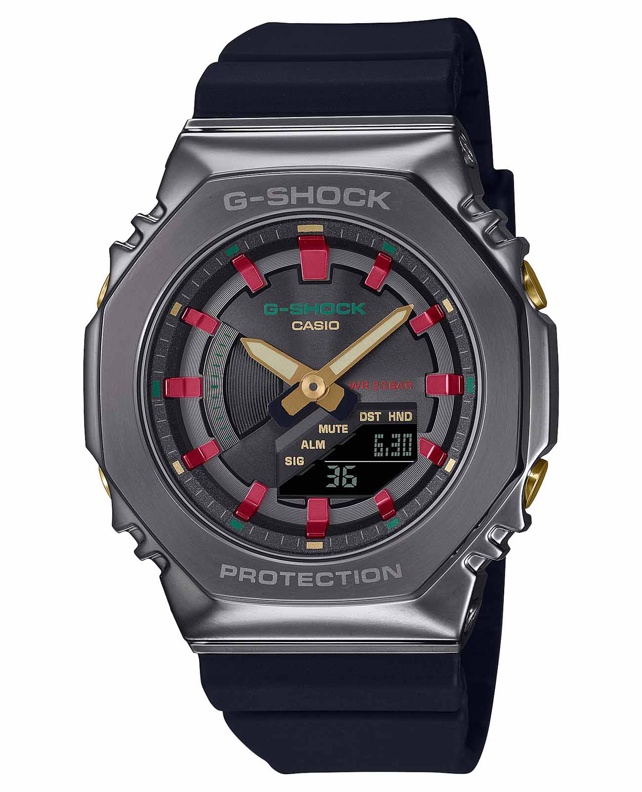 Японские женские часы с двойной подсветкой Casio G-Shock GM-S2100CH-1A, электронный механизм с высокой точностью. Класс водозащиты: 200 метров, позволит плавать, нырять и заниматься другими водными видами спорта. Корпус часов изготовлен из пластика, цвета.