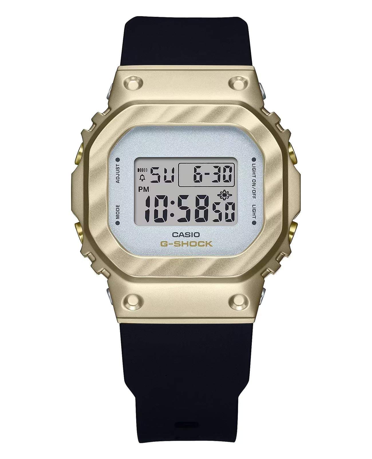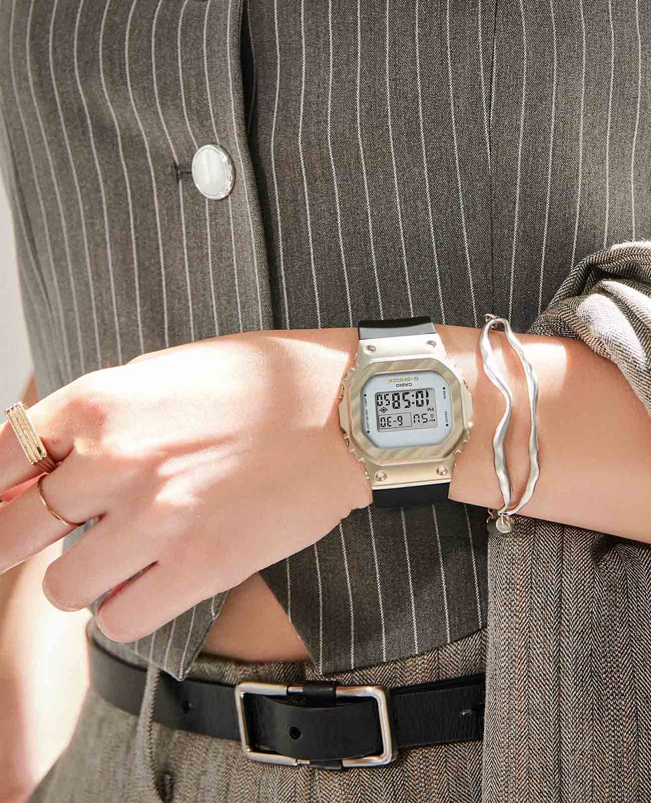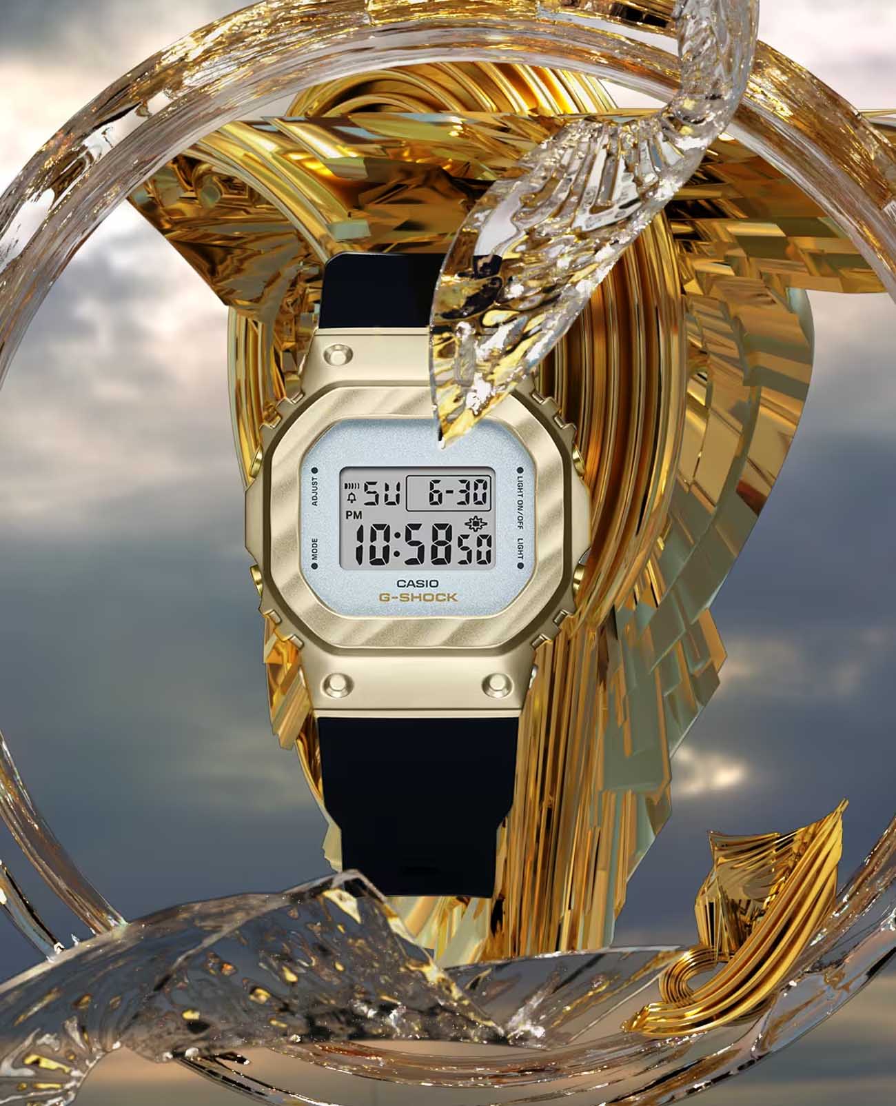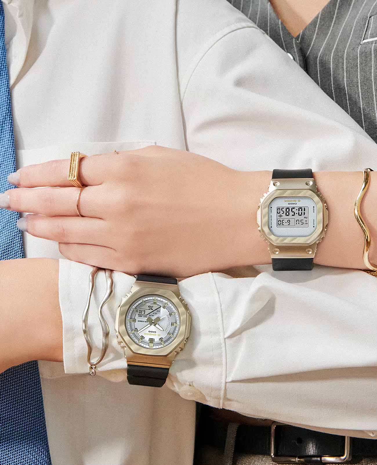 Японские женские часы-хронографХронографФункция позволяет измерять отрезки времени с особой точностью: часы, минуты, секунды. Верным признаком хронографа является наличие на циферблате 3 дополнительных окошек-счётчиков. Casio G-Shock GM-S5600BC-1. Передовая технология ковки придает металлическому безелюБезельВнешний ободок, закрепляющий стекло. В спортивных часах так называется поворотное кольцо с делениями на циферблате, выполняет роль таймера – замеряет отрезки времени на шкале. Неподвижный безель – элемент декора. Однонаправленно вращающийся безель на дайверских часах позволяет фиксировать моменты погружения и выныривания на поверхность., теперь более светлого желто-золотого цвета, вид драпированной ткани. Благодаря ярко контрастирующему черному ремешку, элегантному и изысканному дизайну эти часы займут достойное место в вашей шкатулке для украшений. Минеральное стеклоМинеральное стеклоМинеральное стекло представляет собой искусственно выращенный минерал кварца. Такое стекло отличается особой устойчивостью к повреждениям и царапинам. Уступает по некоторым качествам сапфировому стеклу. устойчивое к появлению царапин, обладающее высокой прозрачностью. Ударопрочный корпусУдаропрочный корпусМеханизм заключён в корпус, выполненный из современных материалов, устойчивых к ударам, механическим повреждениям и падению с высоты: инновационный пластик, карбон, нержавеющая сталь, титан. с IP-покрытиемIP-покрытиеМетод ионного напыления. Демонстрирует повышенную устойчивость к истиранию, окислению и химическим веществам. Под воздействием высокого давления и температуры около 1500°C молекулы металла надёжно соединяются с частицами корпуса часов. защищает механизм от ударов и вибрации. Светодиодная подсветкаСветодиодная подсветкаСветодиодная или LED-подсветка обеспечивает появление яркого холодного свечения за счёт LED-элементов - маленьких лампочек. Они потребляют минимальное количество энергии, чаще всего можно встретить 1 светодиод, в нижней части циферблата. освещает весь циферблат, после отпускания кнопки свечение продолжается еще некоторое время. Настраиваемое послесвечение 1,5 или 3сек. СекундомерСекундомерСекундоме́р — прибор, способный измерять интервалы времени с точностью до долей секунды. с точностью измерения 1/100 секунды и измерением до 23 часов 59 минут 59,99 cек. ТаймерТаймерОтсчитывает секунды в обратном направлении в заданном интервале времени. обратного отсчета (диапазон времени 24 часа), автоматический календарь, 12/24 отображение времени. будильникБудильникБуди́льник — часы, в заданный момент времени подающие звуковой, световой и/или в редких случаях другой сигнал., ежечасный сигнал. Батарея рассчитана на 3 года. Класс водозащиты: 200 метров, позволит плавать, нырять и заниматься другими водными видами спорта. Ремешок из полимерного материала на стандартной застежке.