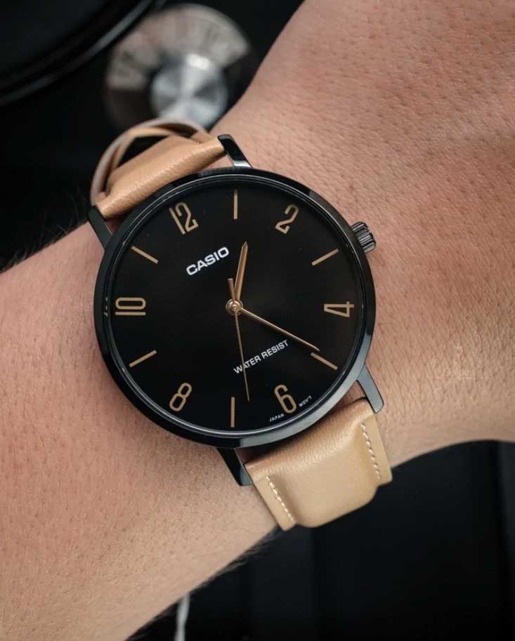 Мужские японские наручные часы из линейки MTP Collection с минеральным стекломМинеральное стеклоМинеральное стекло представляет собой искусственно выращенный минерал кварца. Такое стекло отличается особой устойчивостью к повреждениям и царапинам. Уступает по некоторым качествам сапфировому стеклу. умело сочетают в себе винтажные элементы и спортивный стиль, часы придутся по вкусу ценителям японского качества и лаконичности. Высокотехнологичный аксессуар обладает строгим стилем и традиционной формой циферблата. Сдержанные, классические цвета и плавные линии позволяют носить часы, не снимая, их универсальность идеально подходит для делового костюма, повседневной одежды или образа для вечернего выхода. Для корпуса использована нержавеющая сталь с IP-покрытиемIP-покрытиеМетод ионного напыления. Демонстрирует повышенную устойчивость к истиранию, окислению и химическим веществам. Под воздействием высокого давления и температуры около 1500°C молекулы металла надёжно соединяются с частицами корпуса часов.. Надежные часы которые прослужат много лет. Модель комплектуется надёжным механизмом, точность хода которого составляет +/- 20 сек/мес.