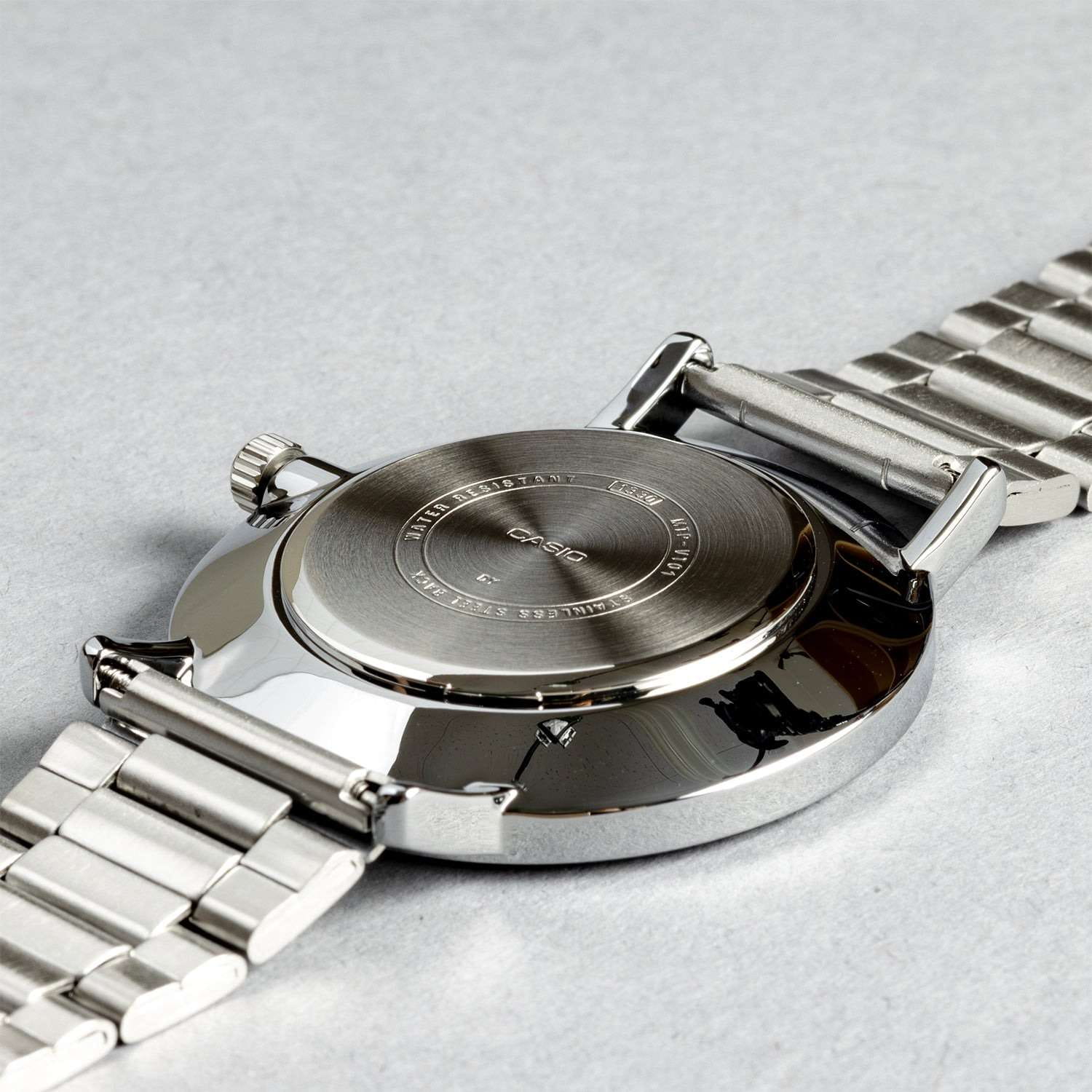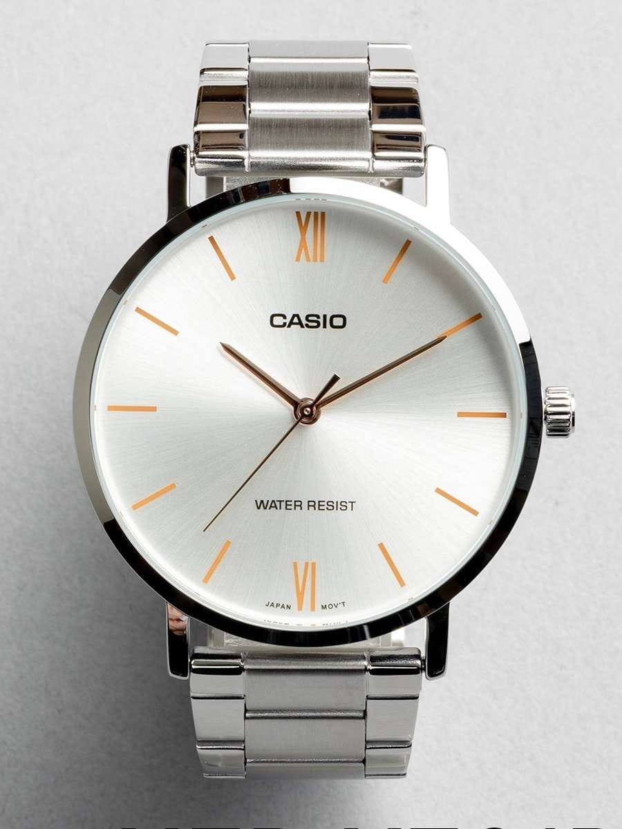 Мужские кварцевые часы Casio — это стильный аксессуар для повседневного образа. Корпус размером 46 мм и толщиной 8,2 мм выполнен из нержавеющей стали 316L. Циферблат серебристого цвета оформлен индексами и стрелками. Циферблат защищён минеральным стекломМинеральное стеклоМинеральное стекло представляет собой искусственно выращенный минерал кварца. Такое стекло отличается особой устойчивостью к повреждениям и царапинам. Уступает по некоторым качествам сапфировому стеклу.. Механизм — кварцевый, питание от батарейки SR626SW с расчётным сроком службы 3 года. Часы оснащены стальным браслетом с раскладной застёжкойРаскладная застёжкаТакой тип застёжки используется только на браслетах из металла. Она никогда не раскрывается полностью, происходит разделение на 2 и более частей. Раскладывающая застёжка снизит вероятность потери часов к минимуму.. Водонепроницаемость 30 м позволяет использовать часы в повседневных условиях. Гарантия — 12 месяцев. Идеальный выбор для тех, кто ценит надёжность, простоту и японское качество.