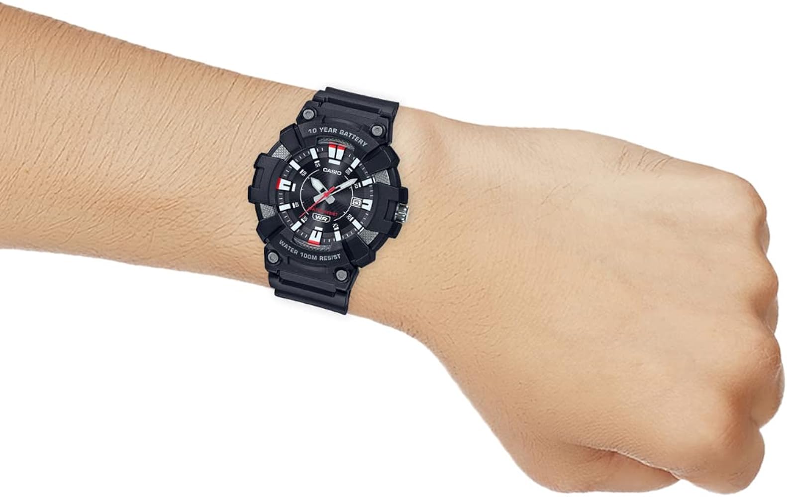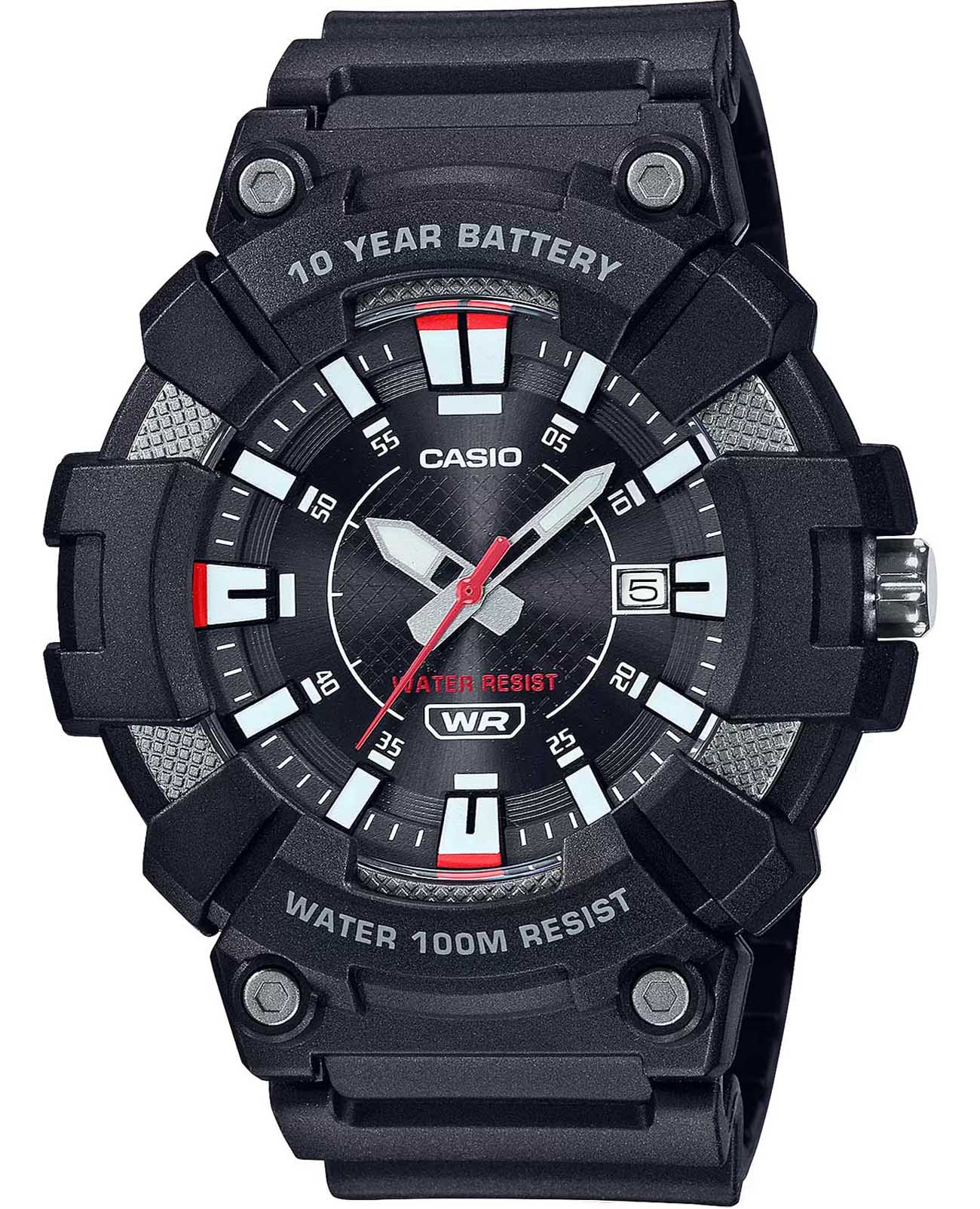 Вы по достоинству оцените эти спортивные часы MW-610H-1A, которые будут стильно смотреться на сильном мужском запястье. Standard. Мужские часы с круглым корпусом. Циферблат с метками в виде штрихов выполнен по технологии Sunray (солнечные лучи). Окошко даты находится в положении 3 часа. Циферблат с люминесцентным покрытиемЛюминесцентное покрытиеПозволяет считывать показания времени в темноте. Производители наносят на стрелки, часовые индексы, безель или поверхность циферблата светонакопительный состав, дающий холодное свечение. стрелок и меток. Заводная головка с защитой.