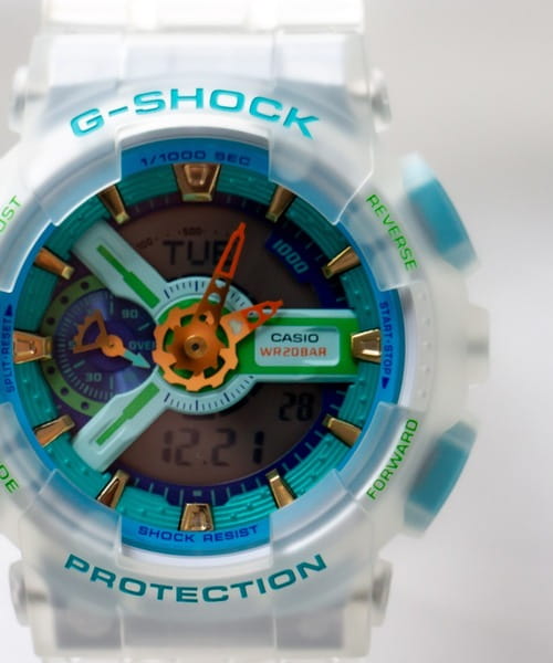 Мужские японские наручные часы Casio G-Shock SLV-21A-7A, электронный механизм с высокой точностью. Класс водозащиты: 200 метров, позволит плавать, нырять и заниматься другими водными видами спорта. Корпус часов изготовлен из пластика, прозрачного цвета.