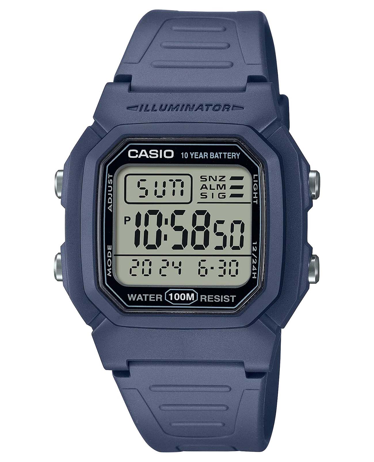 Многофункциональные часы Casio W-800H-2AVDF с секундомером и таймером отлично подойдут для занятий спортом. Кварцевый механизм с высокой точностью. Органическое стекло. Класс водозащиты: 100 метров, позволит плавать, нырять и заниматься другими водными видами спорта. Корпус из пластика. Силикованный ремень с классической застежкой. Батарея рассчитана на 10 лет. Светодиодная подсветкаСветодиодная подсветкаСветодиодная или LED-подсветка обеспечивает появление яркого холодного свечения за счёт LED-элементов - маленьких лампочек. Они потребляют минимальное количество энергии, чаще всего можно встретить 1 светодиод, в нижней части циферблата.. Функция секундомерСекундомерСекундоме́р — прибор, способный измерять интервалы времени с точностью до долей секунды. с точностью измерений 1/100 сек. и пределом измерения 1 час. Ежедневный будильникБудильникБуди́льник — часы, в заданный момент времени подающие звуковой, световой и/или в редких случаях другой сигнал.. Автоматический календарь. 12/24 часовой формат времени.