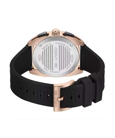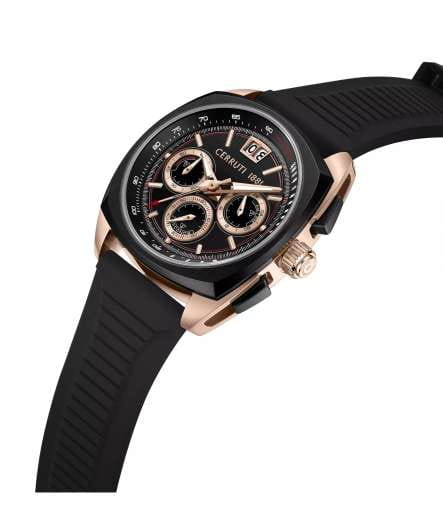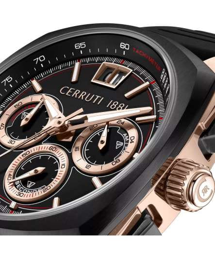 Мужские кварцевые часы Cerruti 1881 Cuneo CIWGO0085102 — спортивный аксессуар с французским дизайном и расширенным функционалом. Корпус из нержавеющей стали 316L с IP-покрытиемIP-покрытиеМетод ионного напыления. Демонстрирует повышенную устойчивость к истиранию, окислению и химическим веществам. Под воздействием высокого давления и температуры около 1500°C молекулы металла надёжно соединяются с частицами корпуса часов., размером 41.3 мм. Циферблат — чёрный с золотыми элементами, с штриховыми метками и окошком даты в положении 12 часов. Стекло — минеральноеМинеральное стеклоМинеральное стекло представляет собой искусственно выращенный минерал кварца. Такое стекло отличается особой устойчивостью к повреждениям и царапинам. Уступает по некоторым качествам сапфировому стеклу. с сапфировым покрытием. Стрелки и метки с люминесцентным покрытиемЛюминесцентное покрытиеПозволяет считывать показания времени в темноте. Производители наносят на стрелки, часовые индексы, безель или поверхность циферблата светонакопительный состав, дающий холодное свечение.. Функции: хронографХронографФункция позволяет измерять отрезки времени с особой точностью: часы, минуты, секунды. Верным признаком хронографа является наличие на циферблате 3 дополнительных окошек-счётчиков., тахиметрТахиметрРазмеченная шкала, располагается на ободке или безеле часов. Тахиметр позволяет рассчитать скорость на определённом участке пути, расстояние измеряется в километрах или милях., секундомер. Ремешок — чёрный силиконовый на стандартной застёжке. Водонепроницаемость 50 м. Идеальный выбор для тех, кто ценит французский дизайн и спортивный стиль.