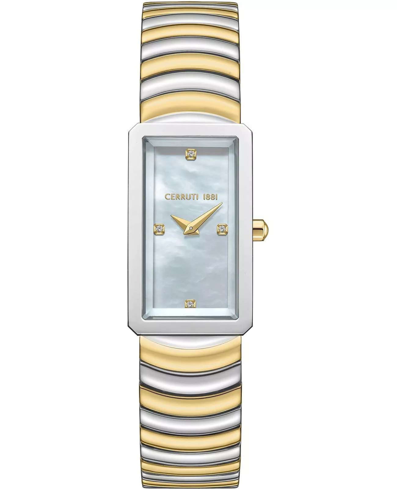 Женские кварцевые часы Cerruti 1881 Vallucciole CIWLG0086202 — миниатюрная элегантность с французским шармом. Корпус из нержавеющей стали 316L, размером 17 × 29 мм. Циферблат — белый перламутровый с точечными метками из кристаллов. Стекло — минеральноеМинеральное стеклоМинеральное стекло представляет собой искусственно выращенный минерал кварца. Такое стекло отличается особой устойчивостью к повреждениям и царапинам. Уступает по некоторым качествам сапфировому стеклу. с сапфировым покрытием. Браслет — стальной с частичным PVD-покрытиемPVDУльтратонкое покрытие наносится в технике вакуумного напыления, сочетает в себе нитрид титана особой прочности со слоем золота или оксида хрома. Несёт в себе декоративную или защитную функцию. на застёжке «бабочка» с кнопкамиЗастёжка "бабочка"Такой вид застёжки дополняется предохранителями, помогающими избежать случайного раскрытия браслета. Обладают изящным исполнением. . Водонепроницаемость 50 м. Идеальный выбор для тех, кто ценит французский дизайн и утончённую изящность.