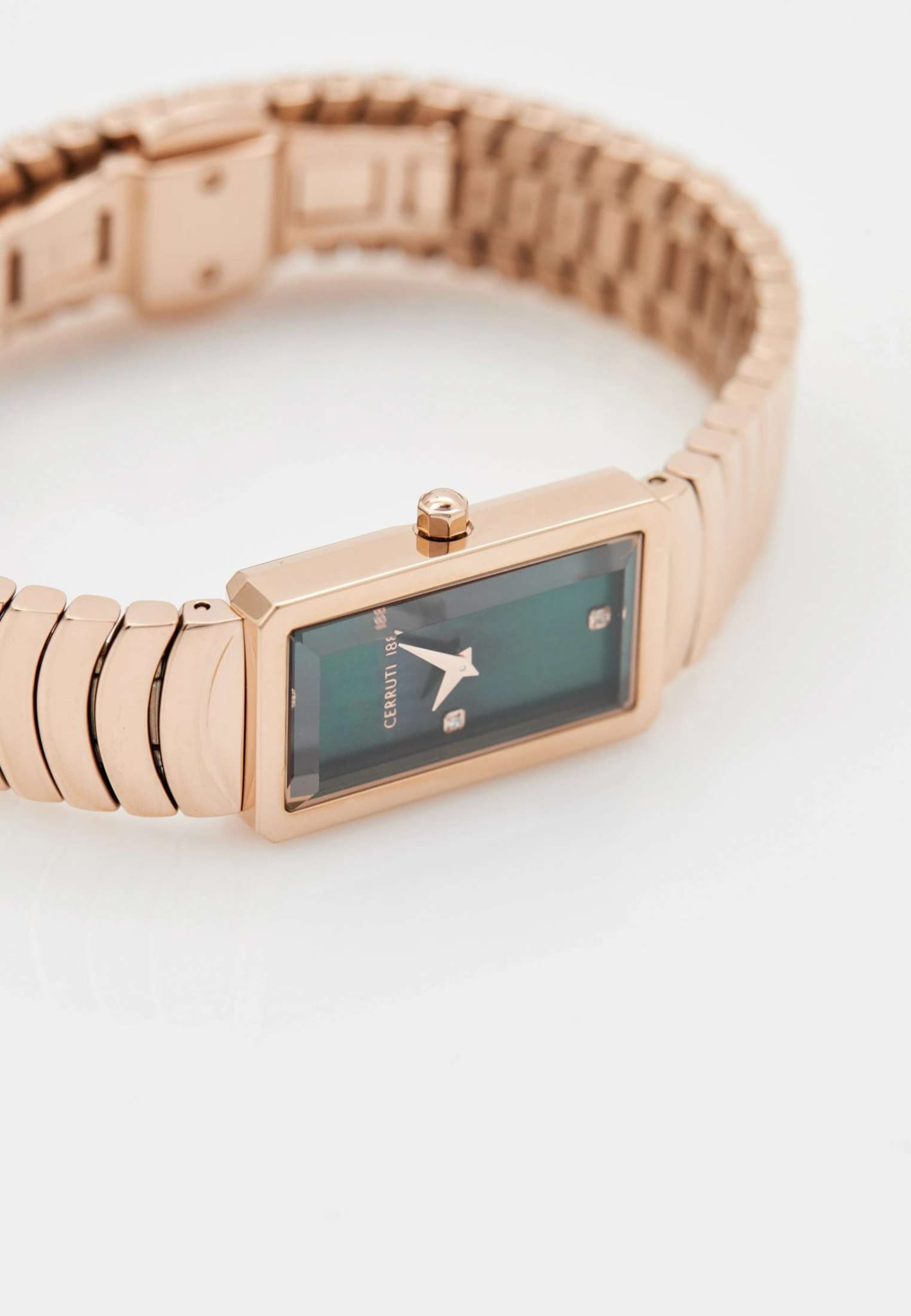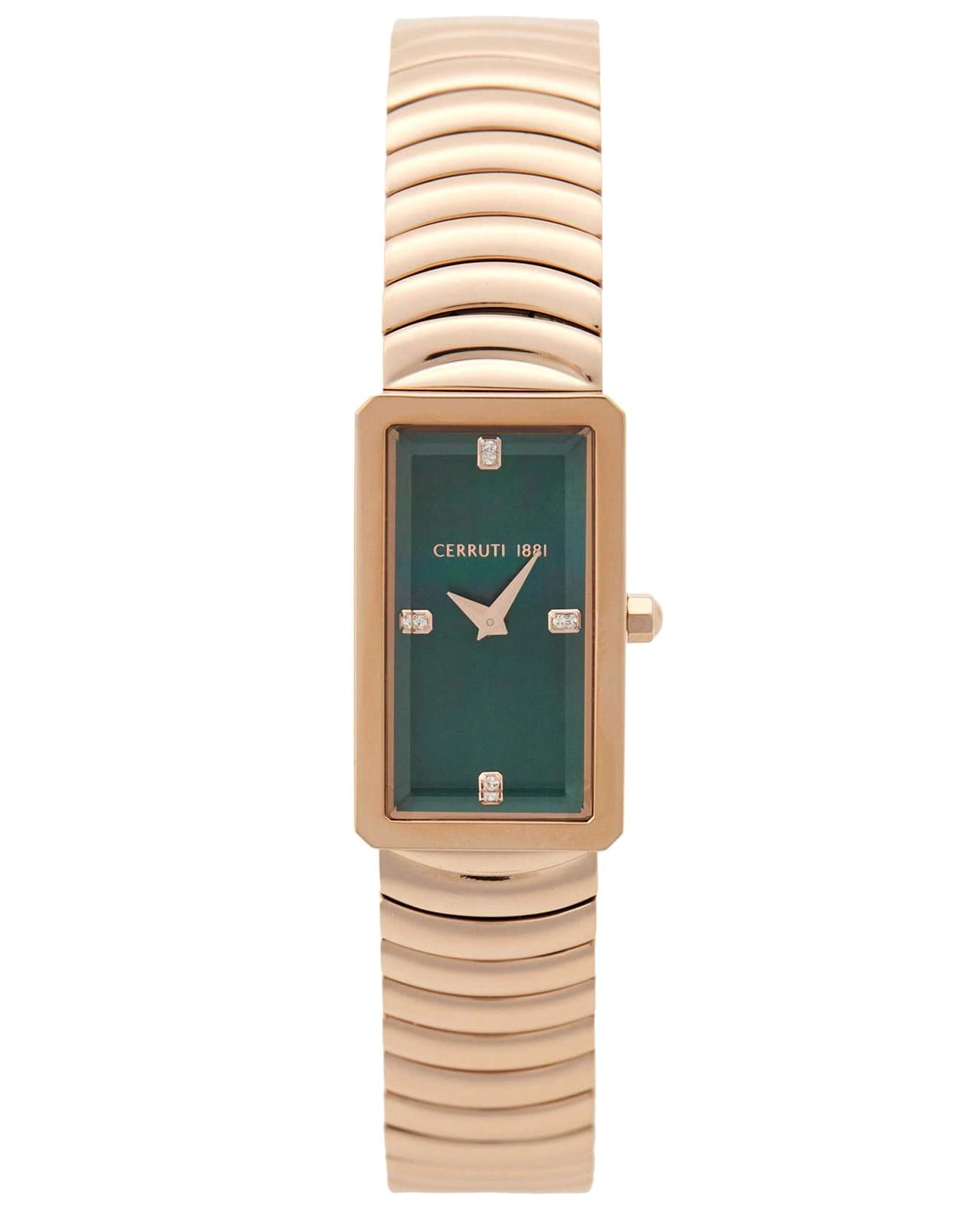 Женские кварцевые часы Cerruti 1881 Vallucciole CIWLG0086205 — миниатюрная элегантность с французским шармом. Корпус из нержавеющей стали 316L с PVD-покрытиемPVDУльтратонкое покрытие наносится в технике вакуумного напыления, сочетает в себе нитрид титана особой прочности со слоем золота или оксида хрома. Несёт в себе декоративную или защитную функцию., размером 17 × 29 мм. Циферблат — зелёный с точечными метками из кристаллов. Стекло — минеральноеМинеральное стеклоМинеральное стекло представляет собой искусственно выращенный минерал кварца. Такое стекло отличается особой устойчивостью к повреждениям и царапинам. Уступает по некоторым качествам сапфировому стеклу. с сапфировым покрытием. Браслет — стальной с PVD-покрытиемPVDУльтратонкое покрытие наносится в технике вакуумного напыления, сочетает в себе нитрид титана особой прочности со слоем золота или оксида хрома. Несёт в себе декоративную или защитную функцию. на застёжке «бабочка» с кнопкамиЗастёжка "бабочка"Такой вид застёжки дополняется предохранителями, помогающими избежать случайного раскрытия браслета. Обладают изящным исполнением. . Водонепроницаемость 50 м. Идеальный выбор для тех, кто ценит французский дизайн и утончённую изящность.