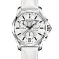 На метке 12 часов размещено 3 бриллианта оттенка Top Wesselton. ХронографХронографФункция позволяет измерять отрезки времени с особой точностью: часы, минуты, секунды. Верным признаком хронографа является наличие на циферблате 3 дополнительных окошек-счётчиков. характеризуется высокой точностью хода благодаря швейцарскому кварцевому механизму ETA G10.211. Ремешок выполнен из натуральной кожи. Стрелки дополнены люминесцентной подсветкойЛюминесцентное покрытиеПозволяет считывать показания времени в темноте. Производители наносят на стрелки, часовые индексы, безель или поверхность циферблата светонакопительный состав, дающий холодное свечение..