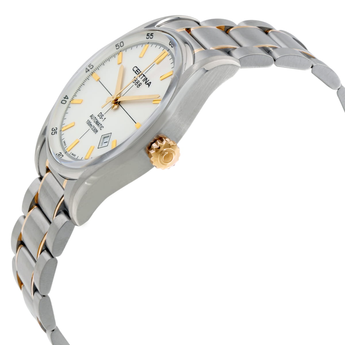 Швейцарский автоматический механизм ETA 2824-2 сохраняет запас хода на 38 часов. Высокую ударопрочность обеспечивает система DS ConceptDS ConceptDouble Security Concept, обозначает двойную надёжность и безупречную точность часов Certina. Двойная система защиты подразумевает обеспечение максимальной устойчивости к ударам и высоких показателей водонепроницаемости.. Циферблат защищен сапфировым стекломСапфировое стеклоПрочный и надёжный материал из кристалла сапфира синтетического происхождения, характеризующийся особой твёрдостью и устойчивостью к царапинам и повреждениям., устойчивым к появлению царапин и обладающим высокой прозрачностью. Стрелки и метки с люминесцентным покрытиемЛюминесцентное покрытиеПозволяет считывать показания времени в темноте. Производители наносят на стрелки, часовые индексы, безель или поверхность циферблата светонакопительный состав, дающий холодное свечение.. Стальной браслет с частичным с PVDPVDУльтратонкое покрытие наносится в технике вакуумного напыления, сочетает в себе нитрид титана особой прочности со слоем золота или оксида хрома. Несёт в себе декоративную или защитную функцию. покрытием. Календарь.