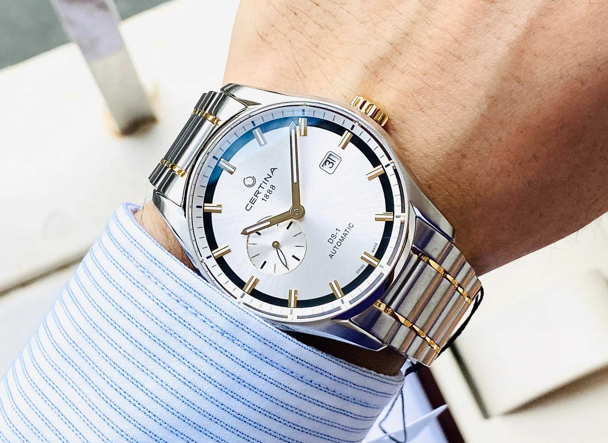 Швейцарский автоматический механизм ETA 2824-2 сохраняет запас хода на 38 часов. Высокую ударопрочность обеспечивает система DS ConceptDS ConceptDouble Security Concept, обозначает двойную надёжность и безупречную точность часов Certina. Двойная система защиты подразумевает обеспечение максимальной устойчивости к ударам и высоких показателей водонепроницаемости.. Циферблат защищен сапфировым стекломСапфировое стеклоПрочный и надёжный материал из кристалла сапфира синтетического происхождения, характеризующийся особой твёрдостью и устойчивостью к царапинам и повреждениям., устойчивым к появлению царапин и обладающим высокой прозрачностью. Стальной браслет с частичным с PVDPVDУльтратонкое покрытие наносится в технике вакуумного напыления, сочетает в себе нитрид титана особой прочности со слоем золота или оксида хрома. Несёт в себе декоративную или защитную функцию. покрытием. Календарь.