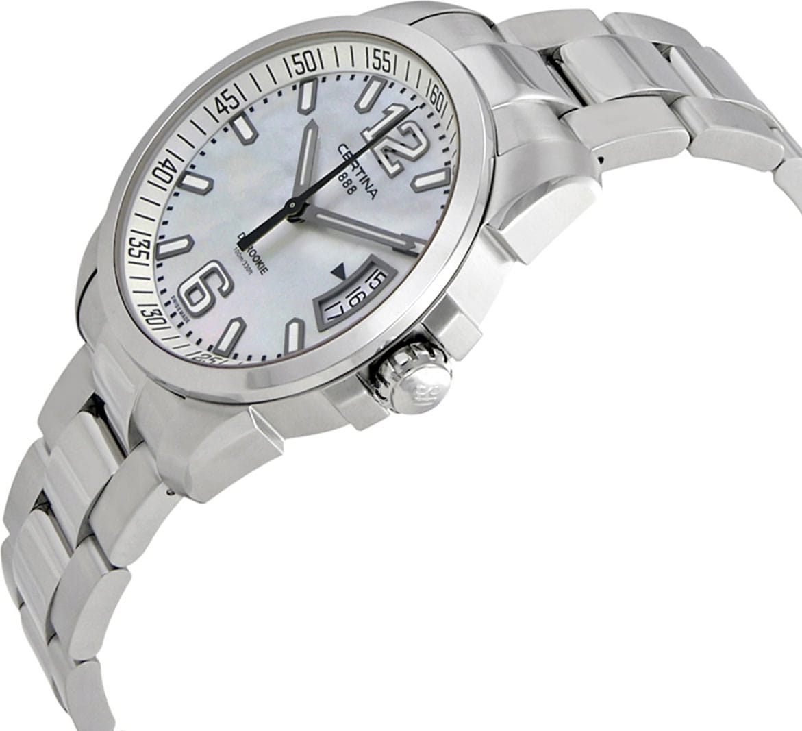Крупные контрастные элементы, расположенные на чёрном циферблате, обеспечивают идеальную читаемость данных вне зависимости от условий видимости. Часы комплектуются швейцарским кварцевым механизмом ETA F07.111, демонстрирующим безупречную точность хода. Система Двойной Надёжности DS ConceptDS ConceptDouble Security Concept, обозначает двойную надёжность и безупречную точность часов Certina. Двойная система защиты подразумевает обеспечение максимальной устойчивости к ударам и высоких показателей водонепроницаемости.. Ударопрочный корпусУдаропрочный корпусМеханизм заключён в корпус, выполненный из современных материалов, устойчивых к ударам, механическим повреждениям и падению с высоты: инновационный пластик, карбон, нержавеющая сталь, титан. и браслет из хирургической стали 316L, устойчивой к коррозии. Люминесцентная подсветкаЛюминесцентное покрытиеПозволяет считывать показания времени в темноте. Производители наносят на стрелки, часовые индексы, безель или поверхность циферблата светонакопительный состав, дающий холодное свечение.. Степень водостойкости WR 100. Функция EOLEOLПредставляет собой систему, уведомляющую владельца часов о необходимости замены элемента питания. За 2 недели до полного разряда батарейки секундная стрелка перестаёт ходить чётко и начинает перепрыгивать на 3-4 деления., оригинальная апертура даты. Диаметр корпуса: 40 мм.