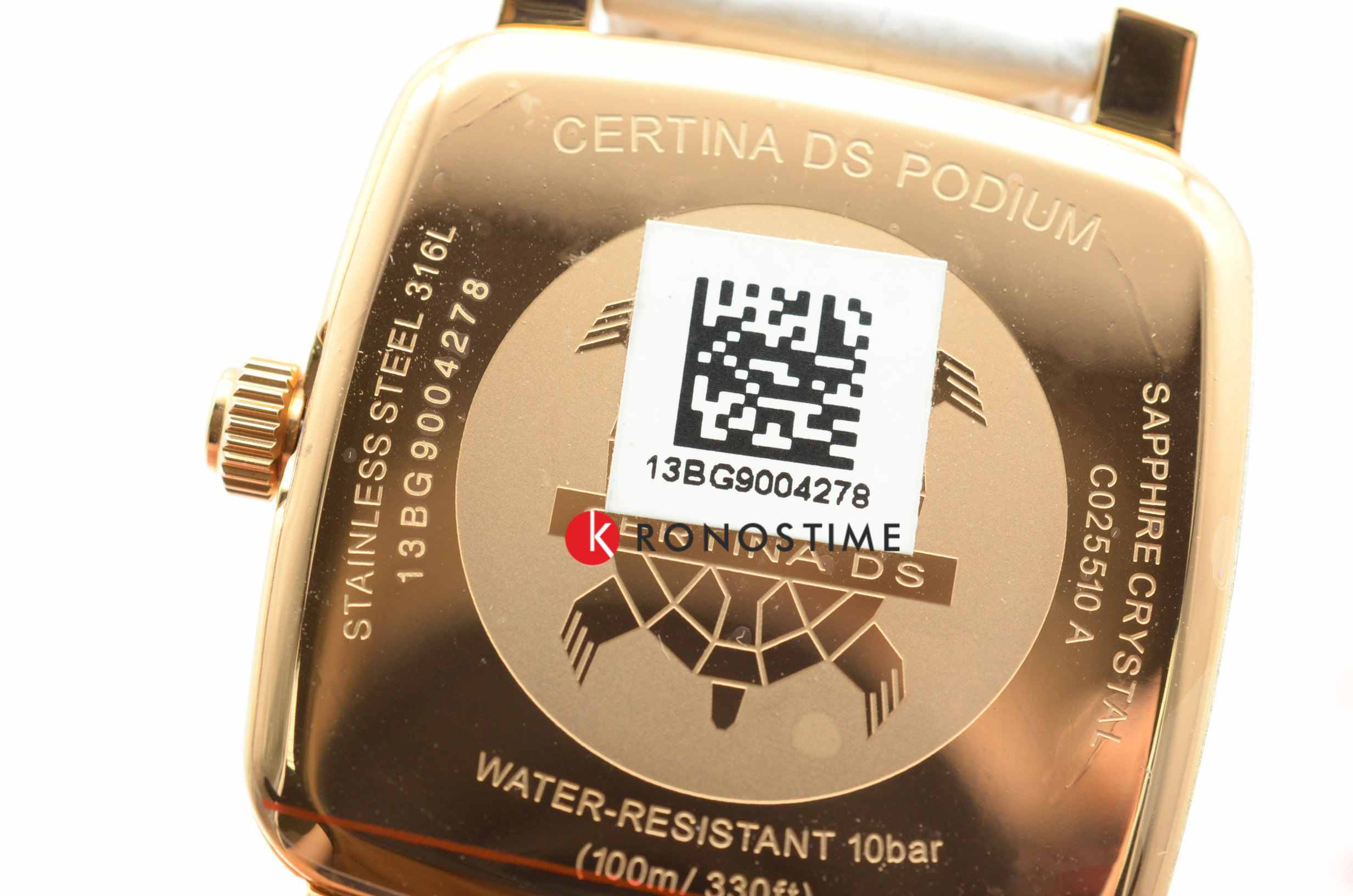 Мужские швейцарские часы с сапфировым стеклом Certina DS Podium C025.510.360.33.00, кварцевый механизм с высокой точностью. Сапфировое стекло устойчивое к появлению царапин, обладающее высокой прозрачностью. Класс водозащиты: 100 метров, позволит плавать, нырять и заниматься другими водными видами спорта. Корпус часов изготовлен из стали, золотистого цвета.