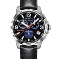 Наручные часы в спортивном стиле привлекают внимание синими деталями, что символизирует скоростное напряжение на гоночной трассе. Отличным дополнением стал кожаный ремешок с перфорацией из натурального материала. Кварцевый швейцарский механизм ETA G10.212 Precidrive™Precidrive™Инновационный кварцевый механизм Certina. Часы, оснащённые этим швейцарским калибром, приравниваются к точности к сертифицированным хронометрам, точность хода составляет +/-10 секунд в год. с повышенной точностью хода, подтверждённой сертификатом COSCСертификат COSCОфициальный сертификат, подтверждающий то, что часы ходят с особо высокой точностью. Для получения документа часы подвергаются тестовым испытаниям, разработанным швейцарским институтом тестирования хронометров COSC. Допустимая норма для механических часов -4/+6 секунд в день, для кварцевых моделей +/- 0,07 секунд в день.. Система DS ConceptDS ConceptDouble Security Concept, обозначает двойную надёжность и безупречную точность часов Certina. Двойная система защиты подразумевает обеспечение максимальной устойчивости к ударам и высоких показателей водонепроницаемости.. Двухстороннее антибликовое покрытие для стекла из сапфира. Стрелки и индексы с составом SuperLumiNovaЛюминесцентное покрытиеПозволяет считывать показания времени в темноте. Производители наносят на стрелки, часовые индексы, безель или поверхность циферблата светонакопительный состав, дающий холодное свечение.. Заводная головка с защитой. ХронографХронографФункция позволяет измерять отрезки времени с особой точностью: часы, минуты, секунды. Верным признаком хронографа является наличие на циферблате 3 дополнительных окошек-счётчиков., шкала тахиметраТахиметрРазмеченная шкала, располагается на ободке или безеле часов. Тахиметр позволяет рассчитать скорость на определённом участке пути, расстояние измеряется в километрах или милях., календарь, секундомер, индикатор EOLEOLПредставляет собой систему, уведомляющую владельца часов о необходимости замены элемента питания. За 2 недели до полного разряда батарейки секундная стрелка перестаёт ходить чётко и начинает перепрыгивать на 3-4 деления., Lap-функция измерения промежуточного времени (круга). Диаметр корпуса: 42 мм.