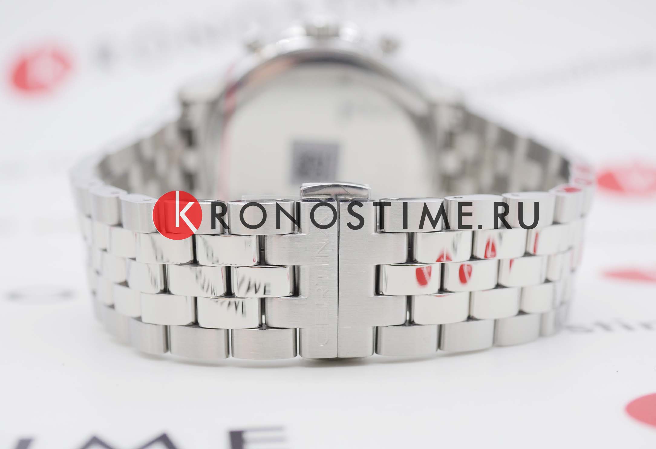 Высокая точность хода швейцарского кварцевого калибра ETA G15.212 AA Precidrive™Precidrive™Инновационный кварцевый механизм Certina. Часы, оснащённые этим швейцарским калибром, приравниваются к точности к сертифицированным хронометрам, точность хода составляет +/-10 секунд в год. отмечена сертификатом COSCСертификат COSCОфициальный сертификат, подтверждающий то, что часы ходят с особо высокой точностью. Для получения документа часы подвергаются тестовым испытаниям, разработанным швейцарским институтом тестирования хронометров COSC. Допустимая норма для механических часов -4/+6 секунд в день, для кварцевых моделей +/- 0,07 секунд в день.. Сапфировое стеклоСапфировое стеклоПрочный и надёжный материал из кристалла сапфира синтетического происхождения, характеризующийся особой твёрдостью и устойчивостью к царапинам и повреждениям. с покрытием «антиблик». ХронографХронографФункция позволяет измерять отрезки времени с особой точностью: часы, минуты, секунды. Верным признаком хронографа является наличие на циферблате 3 дополнительных окошек-счётчиков., секундомер, дата, EOLEOLПредставляет собой систему, уведомляющую владельца часов о необходимости замены элемента питания. За 2 недели до полного разряда батарейки секундная стрелка перестаёт ходить чётко и начинает перепрыгивать на 3-4 деления.. Концепция Двойной Надёжности DSDS ConceptDouble Security Concept, обозначает двойную надёжность и безупречную точность часов Certina. Двойная система защиты подразумевает обеспечение максимальной устойчивости к ударам и высоких показателей водонепроницаемости.. Стальной браслет на застёжке-бабочке с кнопкамиЗастёжка "бабочка"Такой вид застёжки дополняется предохранителями, помогающими избежать случайного раскрытия браслета. Обладают изящным исполнением. .