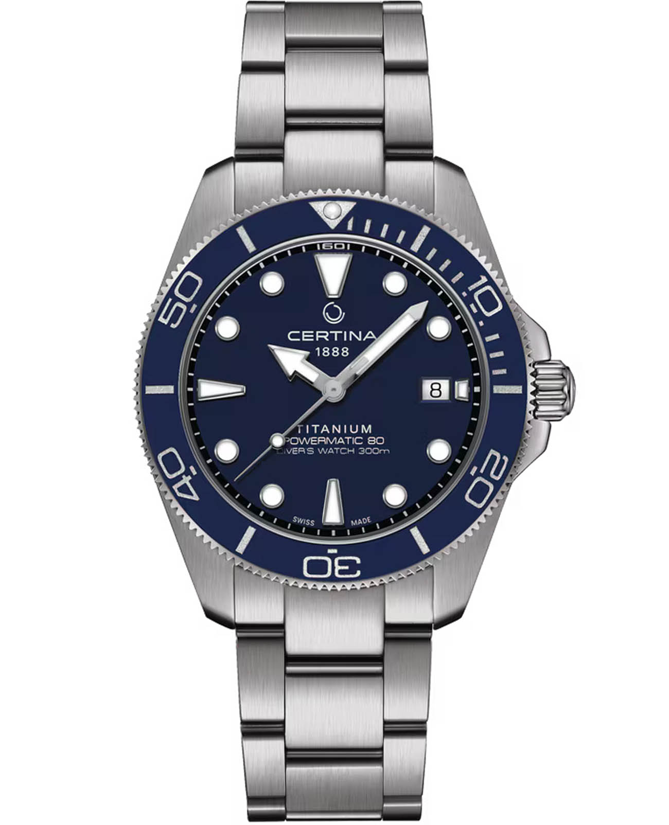 Мужские механические часы Certina DS Action C048.407.44.041.00 с автоматическим механизмом — это надёжный аксессуар, сочетающий в себе швейцарское качество и функциональность. Модель оснащена калибром POWERMATIC 80.611, обеспечивающим запас хода до 80 часов, что делает её удобной для повседневного использования. Корпус выполнен из нержавеющей стали диаметром 40,5 мм и толщиной 14,1 мм, а его поверхность защищена сапфировым стекломСапфировое стеклоПрочный и надёжный материал из кристалла сапфира синтетического происхождения, характеризующийся особой твёрдостью и устойчивостью к царапинам и повреждениям. с антибликовым покрытиемАнтибликовое покрытиеСлой оксида металла в 0,13-0,3 микрон, благодаря которому стекло часов не бликует и не отражает свет. Антибликовое покрытие уменьшает отражение света в 10 раз, обеспечивая отличную читаемость показателей циферблата., устойчивым к царапинам и механическим повреждениям. Браслет из стали серебристого цвета оснащён Раскладная застёжкаРаскладная застёжкаТакой тип застёжки используется только на браслетах из металла. Она никогда не раскрывается полностью, происходит разделение на 2 и более частей. Раскладывающая застёжка снизит вероятность потери часов к минимуму., обеспечивающей комфорт и надёжную фиксацию. Часы с балансом из Nivachron™Nivachron™Специально разработанный инновационный сплав Nivachron™ повышает устойчивость часов к воздействию магнитных полей., обеспечивающим высокую устойчивость к магнитным полям и ударам. Циферблат дополнен точечными метками, а стрелки и индексы имеют Люминесцентное покрытиеЛюминесцентное покрытиеПозволяет считывать показания времени в темноте. Производители наносят на стрелки, часовые индексы, безель или поверхность циферблата светонакопительный состав, дающий холодное свечение., обеспечивающее отличную читаемость даже в условиях слабого освещения. Вращающийся безельБезельВнешний ободок, закрепляющий стекло. В спортивных часах так называется поворотное кольцо с делениями на циферблате, выполняет роль таймера – замеряет отрезки времени на шкале. Неподвижный безель – элемент декора. Однонаправленно вращающийся безель на дайверских часах позволяет фиксировать моменты погружения и выныривания на поверхность. с керамической вставкой добавляет модели спортивный характер. Часы водонепроницаемы более чем на 300 метров , что позволяет использовать их при плавании и других водных активностях без глубокого погружения. Эти часы станут универсальным аксессуаром для тех, кто ценит сочетание стиля, функциональности и надёжности — идеальный выбор для повседневной носки и активного образа жизни.