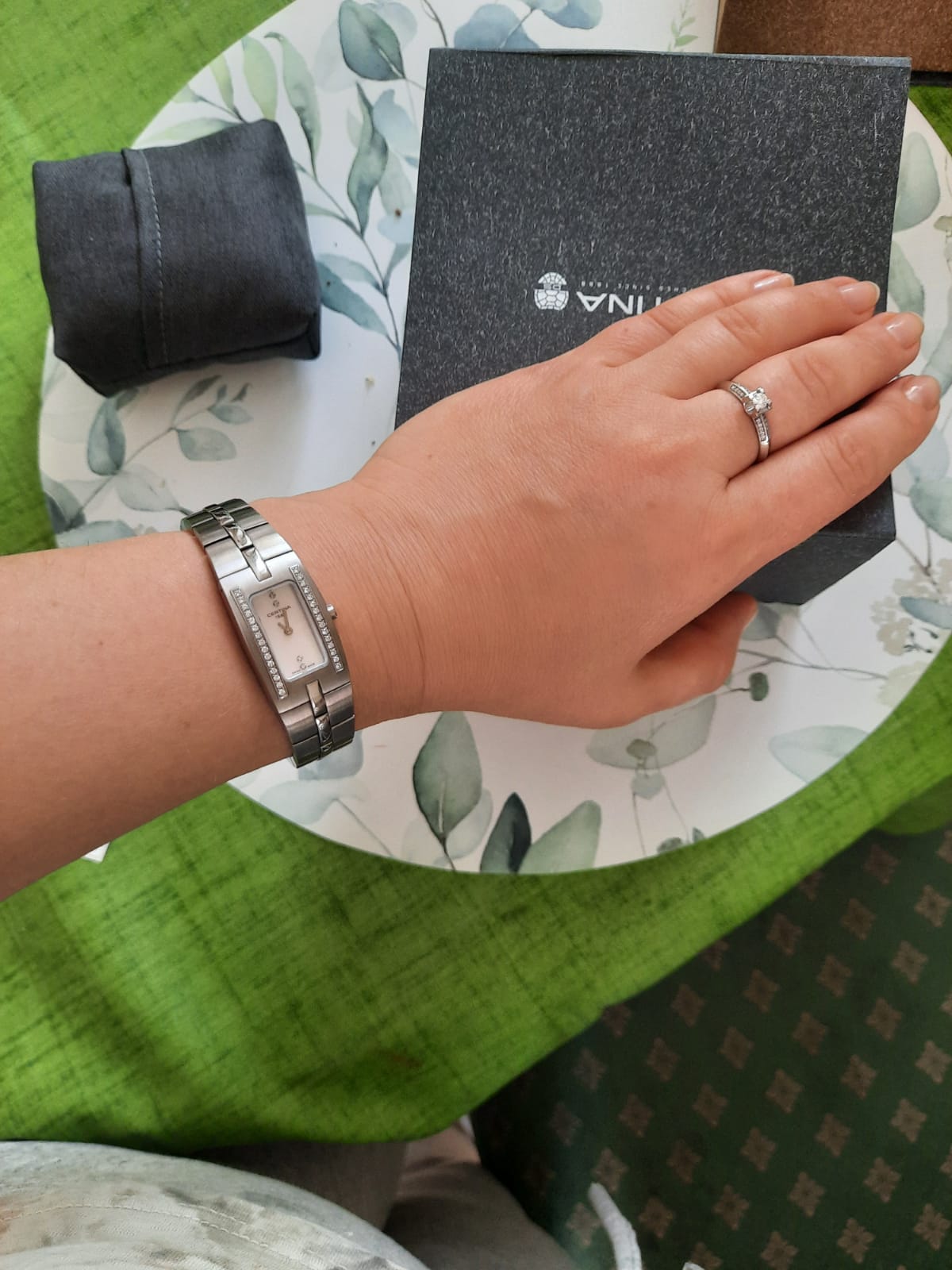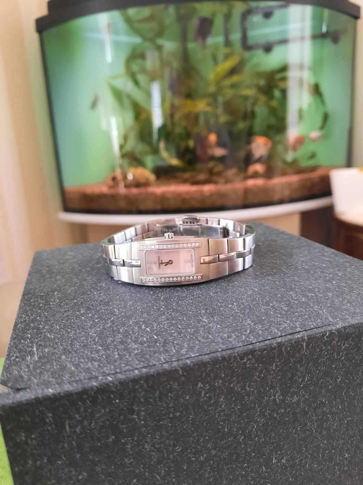 Часы на батарейке - точные и простые в эксплуатации. Вам не потребуется постоянно подзаводить их. Достаточно один раз установить время и наслаждаться работой вашего аксессуара.30 бриллиантов на корпусе и 4 бриллианта на циферблате