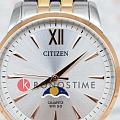 Часы Citizen AK5006-58A произведены в Японии и оснащены надёжным кварцевым механизмом калибра Citizen 6324. Корпус выполнен из нержавеющей стали и имеет классическую круглую форму диаметром 42 мм, а безельБезельВнешний ободок, закрепляющий стекло. В спортивных часах так называется поворотное кольцо с делениями на циферблате, выполняет роль таймера – замеряет отрезки времени на шкале. Неподвижный безель – элемент декора. Однонаправленно вращающийся безель на дайверских часах позволяет фиксировать моменты погружения и выныривания на поверхность. с элегантным золотистым IP-покрытиемIP-покрытиеМетод ионного напыления. Демонстрирует повышенную устойчивость к истиранию, окислению и химическим веществам. Под воздействием высокого давления и температуры около 1500°C молекулы металла надёжно соединяются с частицами корпуса часов.. Минеральное стеклоМинеральное стеклоМинеральное стекло представляет собой искусственно выращенный минерал кварца. Такое стекло отличается особой устойчивостью к повреждениям и царапинам. Уступает по некоторым качествам сапфировому стеклу. защищает серебристый циферблат, украшенный эффектом солнечных лучей по технологии Sunray. На циферблате расположены клиновидные стрелки в стиле Dauphine, метки в виде штрихов и римская цифра в положении 12 часов, а также индикатор фазы Луны — одно из самых востребованных усложнений в часовой классике. Часы защищены от воды по стандарту 50WR, что позволяет не бояться случайных брызг и дождя. Заводная головка отличается рифлёной поверхностью для удобства использования. Стальной браслет с частичным золотистым IP-покрытиемIP-покрытиеМетод ионного напыления. Демонстрирует повышенную устойчивость к истиранию, окислению и химическим веществам. Под воздействием высокого давления и температуры около 1500°C молекулы металла надёжно соединяются с частицами корпуса часов. и раскладной застёжкойРаскладная застёжкаТакой тип застёжки используется только на браслетах из металла. Она никогда не раскрывается полностью, происходит разделение на 2 и более частей. Раскладывающая застёжка снизит вероятность потери часов к минимуму. обеспечивает комфорт и надежную фиксацию на руке. В качестве элемента питания используется батарейка SR621SW, обеспечивающая автономную работу до двух лет.