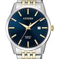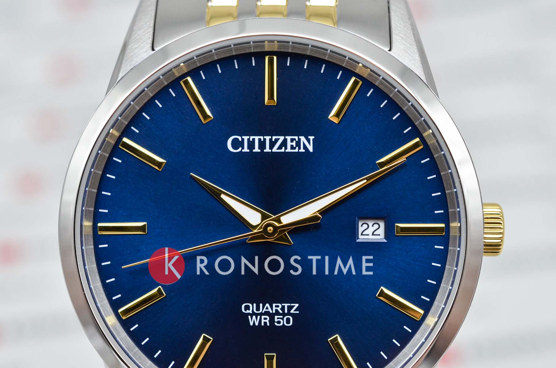 Часы Citizen BI5006-81L сочетают в себе японское качество, современный дизайн и надежность кварцевого механизма Citizen G111. Круглый корпус диаметром 39 мм выполнен из прочной нержавеющей стали, что обеспечивает долговечность и стильный внешний вид. Синий циферблат украшен метками в виде штрихов, а также дополнен окошком календаря с отображением даты и дня недели в позиции «3 часа». Стрелки с люминесцентным покрытиемЛюминесцентное покрытиеПозволяет считывать показания времени в темноте. Производители наносят на стрелки, часовые индексы, безель или поверхность циферблата светонакопительный состав, дающий холодное свечение., что обеспечивает отличную видимость в темноте. Минеральное стеклоМинеральное стеклоМинеральное стекло представляет собой искусственно выращенный минерал кварца. Такое стекло отличается особой устойчивостью к повреждениям и царапинам. Уступает по некоторым качествам сапфировому стеклу. защищает циферблат от царапин и повреждений. Рифленая заводная головка подчеркивает элегантность и практичность модели. Стальной браслет с частичным золотистым IP-покрытиемIP-покрытиеМетод ионного напыления. Демонстрирует повышенную устойчивость к истиранию, окислению и химическим веществам. Под воздействием высокого давления и температуры около 1500°C молекулы металла надёжно соединяются с частицами корпуса часов. оснащен надежной раскладной застёжкойРаскладная застёжкаТакой тип застёжки используется только на браслетах из металла. Она никогда не раскрывается полностью, происходит разделение на 2 и более частей. Раскладывающая застёжка снизит вероятность потери часов к минимуму., что обеспечивает комфортное ношение и подходит для любого случая. Водозащита до 50 метров позволяет не бояться случайных брызг и дождя.