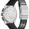 Часы Citizen BY1004-17X — это гармоничное сочетание современного японского стиля, передовых технологий и высокого уровня надежности. Модель выполнена в прочном и легком корпусе из инновационного суперлегкого титана Super Titanium Duratect TIC диаметром 41,5 мм и толщиной 10,8 мм, дополненном черны кожаным ремешком с раскладной застёжкойРаскладная застёжкаТакой тип застёжки используется только на браслетах из металла. Она никогда не раскрывается полностью, происходит разделение на 2 и более частей. Раскладывающая застёжка снизит вероятность потери часов к минимуму. подчеркивает солидный внешний вид модели. БезельБезельВнешний ободок, закрепляющий стекло. В спортивных часах так называется поворотное кольцо с делениями на циферблате, выполняет роль таймера – замеряет отрезки времени на шкале. Неподвижный безель – элемент декора. Однонаправленно вращающийся безель на дайверских часах позволяет фиксировать моменты погружения и выныривания на поверхность. с элегантным золотистым DLC-покрытиемDLC-покрытиеDiamond like carbon - одно из лучших видов покрытия, представляющее собой углерод с алмазными свойствами. На поверхность материала наносятся распавшиеся молекулы углерода, превращающиеся в плёнку из алмазоподобных связей, которая перенимает твёрдость алмаза.. Кварцевый механизм калибра Citizen H874 оснащен системой Eco-Drive, которая работает на солнечной энергии, не требуя замены батарейки, и обеспечивает запас хода до 180 дней. Часы отличаются высокой точностью хода — отклонение составляет всего +/- 15 секунд в месяц. Среди функциональных особенностей — автоматическая настройка времени по радиосигналу для Германии, Японии, США и Китая, вечный календарь, функция мирового времениМировое время Полезное часовое усложнение, отображающее время в основных городах и известных областях по всему миру, оно связано с часовыми поясами, удобно для путешественников и бизнесменов. , 12/24-часовой формат, автоматическое переключение летнего и зимнего времени, а также уникальный полностью автоматизированный радиоуправляемый механизм определения фаз Луны с возможностью отображения как для северного, так и южного полушария. На черном циферблате расположена апертура даты в положении 4 часа, все стрелки с люминесцентным покрытиемЛюминесцентное покрытиеПозволяет считывать показания времени в темноте. Производители наносят на стрелки, часовые индексы, безель или поверхность циферблата светонакопительный состав, дающий холодное свечение. для отличной читаемости в любое время суток. Устойчивое к царапинам сапфировое стеклоСапфировое стеклоПрочный и надёжный материал из кристалла сапфира синтетического происхождения, характеризующийся особой твёрдостью и устойчивостью к царапинам и повреждениям. с антибликовым покрытиемАнтибликовое покрытиеСлой оксида металла в 0,13-0,3 микрон, благодаря которому стекло часов не бликует и не отражает свет. Антибликовое покрытие уменьшает отражение света в 10 раз, обеспечивая отличную читаемость показателей циферблата. надежно защищает циферблат. Водозащита уровня WR 100 позволяет использовать часы при плавании без погружения.
