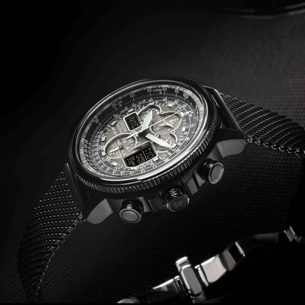 Citizen Promaster JY8037-50E часы-хронографХронографФункция позволяет измерять отрезки времени с особой точностью: часы, минуты, секунды. Верным признаком хронографа является наличие на циферблате 3 дополнительных окошек-счётчиков. с секундомеромСекундомерСекундоме́р — прибор, способный измерять интервалы времени с точностью до долей секунды. спортивного дизайна с высоким уровнем водозащиты. Корпус из нержавеющей стали с IP-покрытиемIP-покрытиеМетод ионного напыления. Демонстрирует повышенную устойчивость к истиранию, окислению и химическим веществам. Под воздействием высокого давления и температуры около 1500°C молекулы металла надёжно соединяются с частицами корпуса часов. диаметром 47,1 мм идеально сбалансирован. Минеральное стеклоМинеральное стеклоМинеральное стекло представляет собой искусственно выращенный минерал кварца. Такое стекло отличается особой устойчивостью к повреждениям и царапинам. Уступает по некоторым качествам сапфировому стеклу. обеспечивает отличную защиту циферблата от царапин. Часы работают на основе кварцевого механизма, питание от солнечной энергии. Стальной браслет миланского плетения на застёжке-бабочке с кнопкамиЗастёжка "бабочка"Такой вид застёжки дополняется предохранителями, помогающими избежать случайного раскрытия браслета. Обладают изящным исполнением. идеально дополняют дизайн часов, обеспечивая комфортное ношение. Стрелки и метки на циферблате имеют люминесцентное покрытиеЛюминесцентное покрытиеПозволяет считывать показания времени в темноте. Производители наносят на стрелки, часовые индексы, безель или поверхность циферблата светонакопительный состав, дающий холодное свечение. позволяющее легко определять время даже в темноте. Поворотный безельБезельВнешний ободок, закрепляющий стекло. В спортивных часах так называется поворотное кольцо с делениями на циферблате, выполняет роль таймера – замеряет отрезки времени на шкале. Неподвижный безель – элемент декора. Однонаправленно вращающийся безель на дайверских часах позволяет фиксировать моменты погружения и выныривания на поверхность.. Автоматический прием сигналов от радиовышек, расположенных в различных точках земного шара, которые передают временные сигналы от определенных атомных часов. Коррекция текущего времени радиосигналом на территории почти всей Европы, США, Японии и Китая. Функция индикации заряда (EOL) и предотвращения перезарядки. Мировое времяМировое время Полезное часовое усложнение, отображающее время в основных городах и известных областях по всему миру, оно связано с часовыми поясами, удобно для путешественников и бизнесменов. - 43 города (29 часовых поясов), переход на зимнее и летнее время. ТаймерТаймерОтсчитывает секунды в обратном направлении в заданном интервале времени. обратного отсчета до 99мин. Секундомер с точностью 1сек и временем измерения 1ч. 12-ти и 24-х часовой формат. Логарифмическая линейка. Часы обладают впечатляющей водонепроницаемостью до 200WR, что делает их идеальными для плавания, ныряния и погружений с аквалангом.