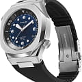 Часы D1 Milano DVRJ02 — это механические мужские часы с автоподзаводом, которые поражают своим спортивным стилем и точностью исполнения. С этими удобными часами покорение морских глубин выйдет на новый уровень. Корпус из нержавеющей стали серебристого цвета гармонично сочетается с синим циферблатом. Запас хода 41 час. Циферблат защищен сапфировым стекломСапфировое стеклоПрочный и надёжный материал из кристалла сапфира синтетического происхождения, характеризующийся особой твёрдостью и устойчивостью к царапинам и повреждениям., а черный силиконовый ремешок придает ему элегантный вид. На циферблате часов есть окошко даты в положении 4 часа. На часовую, минутную стрелки нанесено люминесцентное покрытиеЛюминесцентное покрытиеПозволяет считывать показания времени в темноте. Производители наносят на стрелки, часовые индексы, безель или поверхность циферблата светонакопительный состав, дающий холодное свечение., которое светится в темноте, создавая необычное изображение. Водонепроницаемость часов достигает 300 метров, что делает их подходящими для для дайвинга.