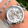 Женские кварцевые часы Daniel Klein — это стильный и функциональный аксессуар. Корпус диаметром 35 мм выполнен из металла. Циферблат серебристого цвета выполнен по технологии Sunray («солнечные лучи») и оформлен точками, клиновидными стрелками в стиле Dauphine и фирменным логотипом Daniel Klein в положении 12 часов. Присутствуют отдельные индикаторы дня недели и даты, а также 24-часовой формат времени. Циферблат защищён минеральным стекломМинеральное стеклоМинеральное стекло представляет собой искусственно выращенный минерал кварца. Такое стекло отличается особой устойчивостью к повреждениям и царапинам. Уступает по некоторым качествам сапфировому стеклу.. Механизм — японское кварцевое движение калибра TMI S.Epson VX3JE1. Гранёная заводная головка придаёт изделию дополнительный стиль. Часы оснащены стальным браслетом на раскладной застёжкеРаскладная застёжкаТакой тип застёжки используется только на браслетах из металла. Она никогда не раскрывается полностью, происходит разделение на 2 и более частей. Раскладывающая застёжка снизит вероятность потери часов к минимуму.. Водонепроницаемость 30 м позволяет использовать часы в повседневных условиях. Идеальный выбор для тех, кто ценит турецкое качество и универсальный дизайн.