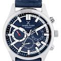 Мужские кварцевые часы Daniel Klein — это спортивный и функциональный аксессуар для активных мужчин. Корпус диаметром 43 мм выполнен из нержавеющей стали. Циферблат синего цвета выполнен по технологии Sunray («солнечные лучи») и оформлен штрихами и мечевидными стрелками в стиле Sword. Присутствуют индикаторы 24-часового формата времени и второго часового пояса (GMTВторой часовой поясФункция, позволяющая отображать время двух часовых поясов одновременно.). Окошко даты расположено между 4 и 5 часами. Стрелки и метки с люминесцентным покрытиемЛюминесцентное покрытиеПозволяет считывать показания времени в темноте. Производители наносят на стрелки, часовые индексы, безель или поверхность циферблата светонакопительный состав, дающий холодное свечение., обеспечивающим хорошую читаемость в темноте. Циферблат защищён минеральным стекломМинеральное стеклоМинеральное стекло представляет собой искусственно выращенный минерал кварца. Такое стекло отличается особой устойчивостью к повреждениям и царапинам. Уступает по некоторым качествам сапфировому стеклу.. Заводная головка рифлёная. Часы оснащены кожаным ремешком на классической пряжке. Водонепроницаемость 50 м позволяет использовать часы в повседневных условиях. Идеальный выбор для тех, кто ценит турецкое качество и универсальный дизайн.