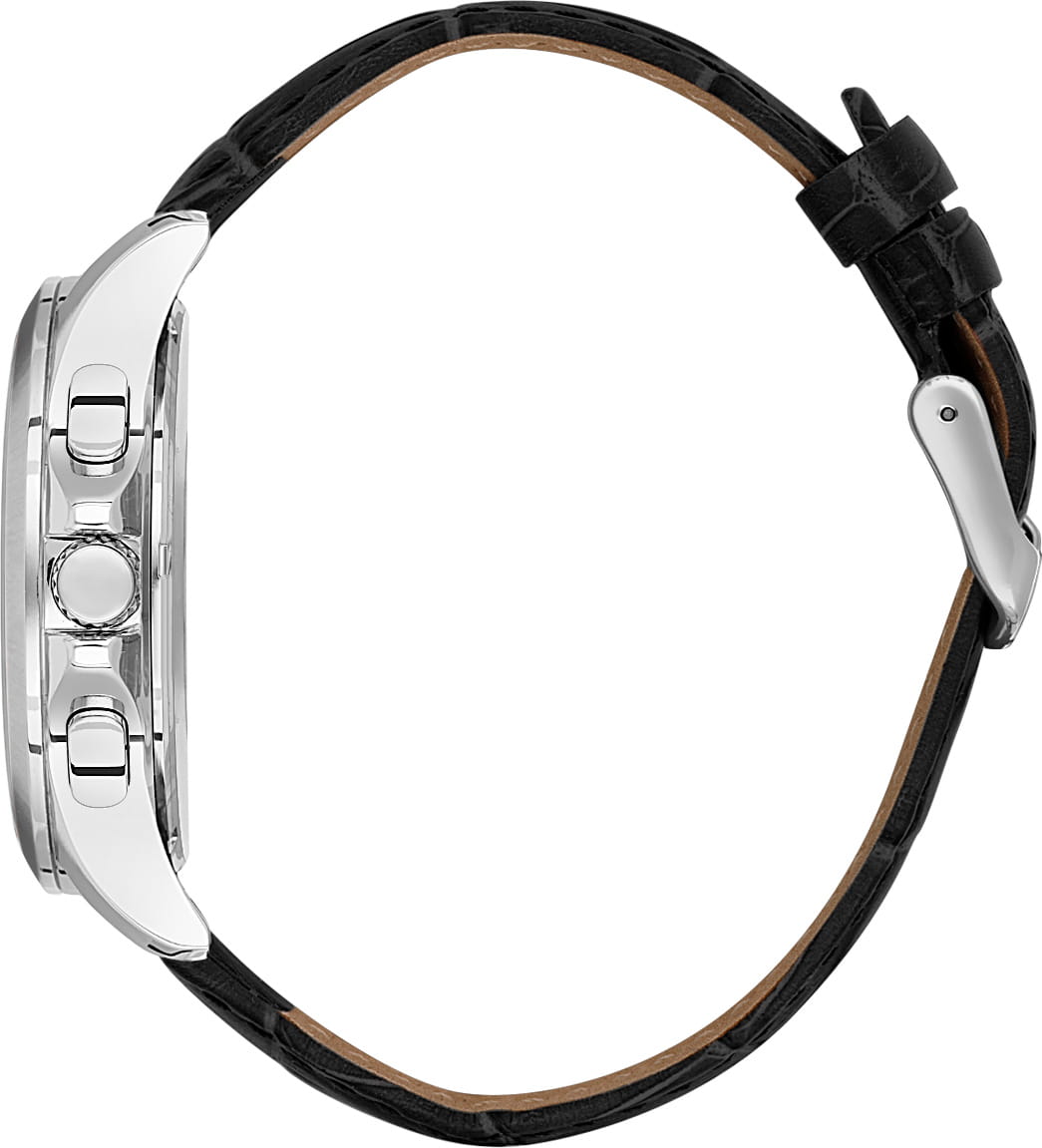 Мужские кварцевые часы Daniel Klein — это продуманный и практичный аксессуар. Корпус диаметром 43 мм выполнен из нержавеющей стали. Циферблат чёрного цвета оформлен штрихами, арабской цифрой 12 и стрелками. Присутствуют индикаторы 24-часового формата времени и второго часового пояса (GMTВторой часовой поясФункция, позволяющая отображать время двух часовых поясов одновременно.). Окошко даты расположено между 4 и 5 часами. Стрелки и метки с люминесцентным покрытиемЛюминесцентное покрытиеПозволяет считывать показания времени в темноте. Производители наносят на стрелки, часовые индексы, безель или поверхность циферблата светонакопительный состав, дающий холодное свечение., обеспечивающим хорошую читаемость в темноте. Циферблат защищён минеральным стекломМинеральное стеклоМинеральное стекло представляет собой искусственно выращенный минерал кварца. Такое стекло отличается особой устойчивостью к повреждениям и царапинам. Уступает по некоторым качествам сапфировому стеклу.. Заводная головка рифлёная, с защитой. Часы оснащены ремешком из натуральной кожи на классической пряжке. Водонепроницаемость 50 м позволяет использовать часы в повседневных условиях. Идеальный выбор для тех, кто ценит турецкое качество и универсальный дизайн.