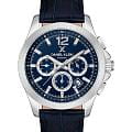 Мужские кварцевые часы Daniel Klein — это продуманный и практичный аксессуар. Корпус диаметром 43 мм выполнен из нержавеющей стали. Циферблат синего цвета оформлен штрихами, арабской цифрой 12 и стрелками. Присутствуют индикаторы 24-часового формата времени и второго часового пояса (GMTВторой часовой поясФункция, позволяющая отображать время двух часовых поясов одновременно.). Окошко даты расположено между 4 и 5 часами. Стрелки и метки с люминесцентным покрытиемЛюминесцентное покрытиеПозволяет считывать показания времени в темноте. Производители наносят на стрелки, часовые индексы, безель или поверхность циферблата светонакопительный состав, дающий холодное свечение., обеспечивающим хорошую читаемость в темноте. Циферблат защищён минеральным стекломМинеральное стеклоМинеральное стекло представляет собой искусственно выращенный минерал кварца. Такое стекло отличается особой устойчивостью к повреждениям и царапинам. Уступает по некоторым качествам сапфировому стеклу.. Заводная головка рифлёная, с защитой. Часы оснащены ремешком из натуральной кожи на классической пряжке. Водонепроницаемость 50 м позволяет использовать часы в повседневных условиях. Идеальный выбор для тех, кто ценит турецкое качество и универсальный дизайн.