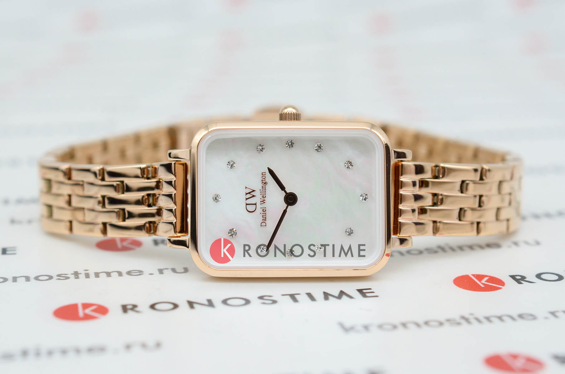 Daniel Wellington Quadro DW00100620 — элегантные женские часы с характерным скандинавским минимализмом. Прямоугольный корпус из нержавеющей стали с PVDPVDУльтратонкое покрытие наносится в технике вакуумного напыления, сочетает в себе нитрид титана особой прочности со слоем золота или оксида хрома. Несёт в себе декоративную или защитную функцию.-покрытием в цвете розового золота подчёркивает утончённость дизайна. Перламутровый циферблат украшен аккуратными метками-камнями, создающими изысканный блеск при каждом движении. Часы надёжно защищены минеральным стекломМинеральное стеклоМинеральное стекло представляет собой искусственно выращенный минерал кварца. Такое стекло отличается особой устойчивостью к повреждениям и царапинам. Уступает по некоторым качествам сапфировому стеклу., стойким к мелким повреждениям. Браслет из нержавеющей стали с утончённым плетением фиксируется с помощью застёжки «бабочка»Застёжка "бабочка"Такой вид застёжки дополняется предохранителями, помогающими избежать случайного раскрытия браслета. Обладают изящным исполнением. , которая обеспечивает комфорт и надёжность при носке. Модель работает на базе точного кварцевого механизма и подойдёт как для повседневных, так и для вечерних образов, подчеркивая индивидуальность своей обладательницы.