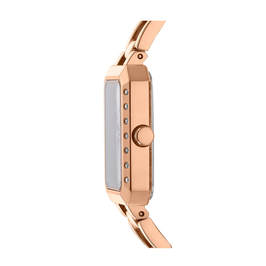 DKNY Uptown Glitz DK1L010M0035 — женские кварцевые часы, объединяющие нью-йоркский гламур и урбанистическую роскошь. Корпус из нержавеющей стали диаметром 36 мм и минеральное стеклоМинеральное стеклоМинеральное стекло представляет собой искусственно выращенный минерал кварца. Такое стекло отличается особой устойчивостью к повреждениям и царапинам. Уступает по некоторым качествам сапфировому стеклу. обеспечивает защиту от царапин, а водонепроницаемость до 30 метров делает модель практичной для активного отдыха или повседневной носки. Стальной браслет с IP-покрытиемIP-покрытиеМетод ионного напыления. Демонстрирует повышенную устойчивость к истиранию, окислению и химическим веществам. Под воздействием высокого давления и температуры около 1500°C молекулы металла надёжно соединяются с частицами корпуса часов. и ювелирной застежкой гарантирует комфорт и надежность. БезельБезельВнешний ободок, закрепляющий стекло. В спортивных часах так называется поворотное кольцо с делениями на циферблате, выполняет роль таймера – замеряет отрезки времени на шкале. Неподвижный безель – элемент декора. Однонаправленно вращающийся безель на дайверских часах позволяет фиксировать моменты погружения и выныривания на поверхность. инкрустирован кристаллами. Идеальный аксессуар для женщин, ценящих смелые городские образы с акцентами роскоши — от деловых встреч до вечерних выходов.