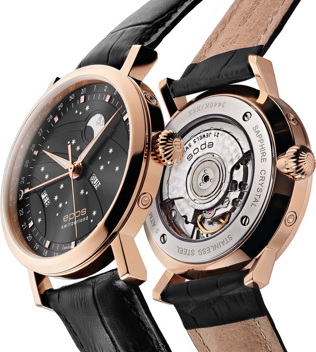 Швейцарские мужские механические часы Epos Big Moon 3440.322.24.14.25